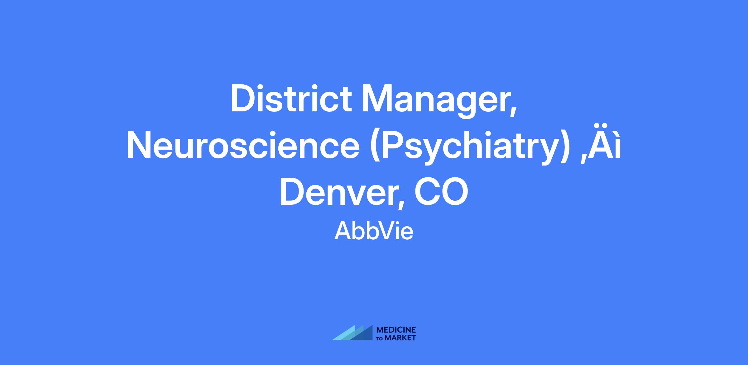This is a field-based District Manager role overseeing parts of Colorado and Southern Arizona, responsible for coordinating in-field commercial activity, creating and implementing the District Sales Plan, and monitoring progress to achieve targets in neuroscience/psychiatry within the assigned geography.