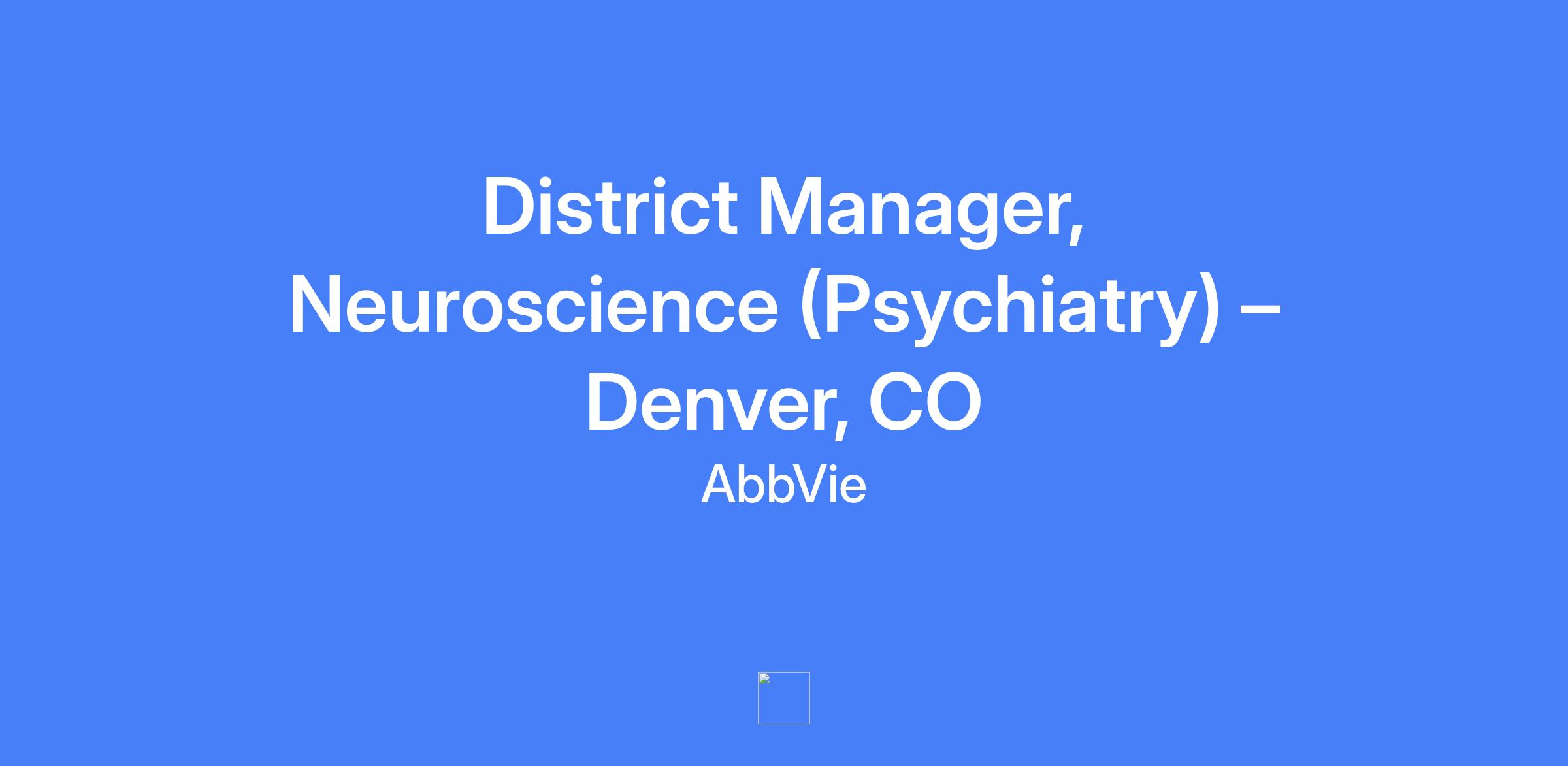 This is a field-based District Manager role overseeing parts of Colorado and Southern Arizona, responsible for coordinating in-field commercial activity, creating and implementing the District Sales Plan, and monitoring progress to achieve targets in neuroscience/psychiatry within the assigned geography.