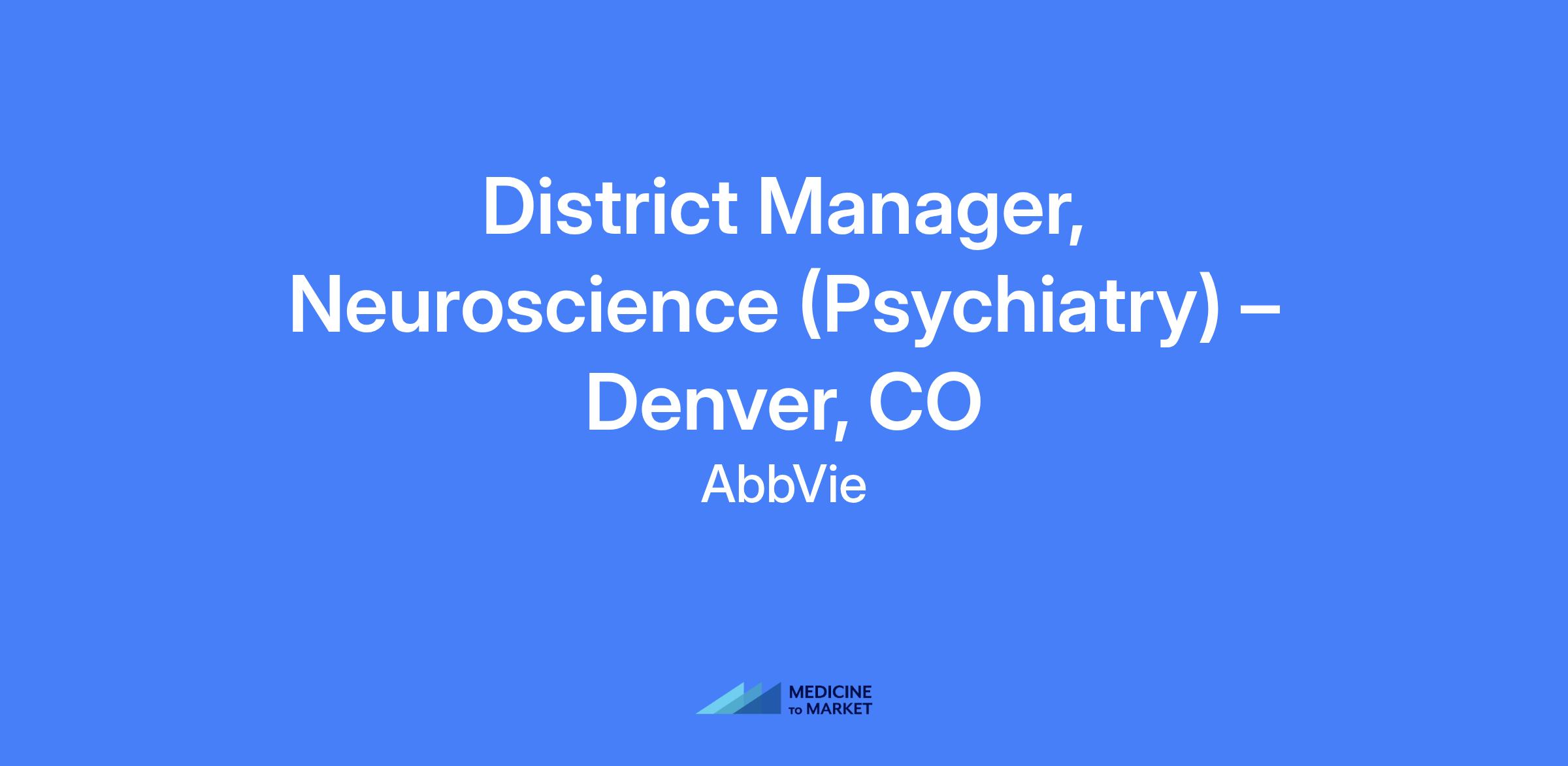 This is a field-based District Manager role overseeing parts of Colorado and Southern Arizona, responsible for coordinating in-field commercial activity, creating and implementing the District Sales Plan, and monitoring progress to achieve targets in neuroscience/psychiatry within the assigned geography.
