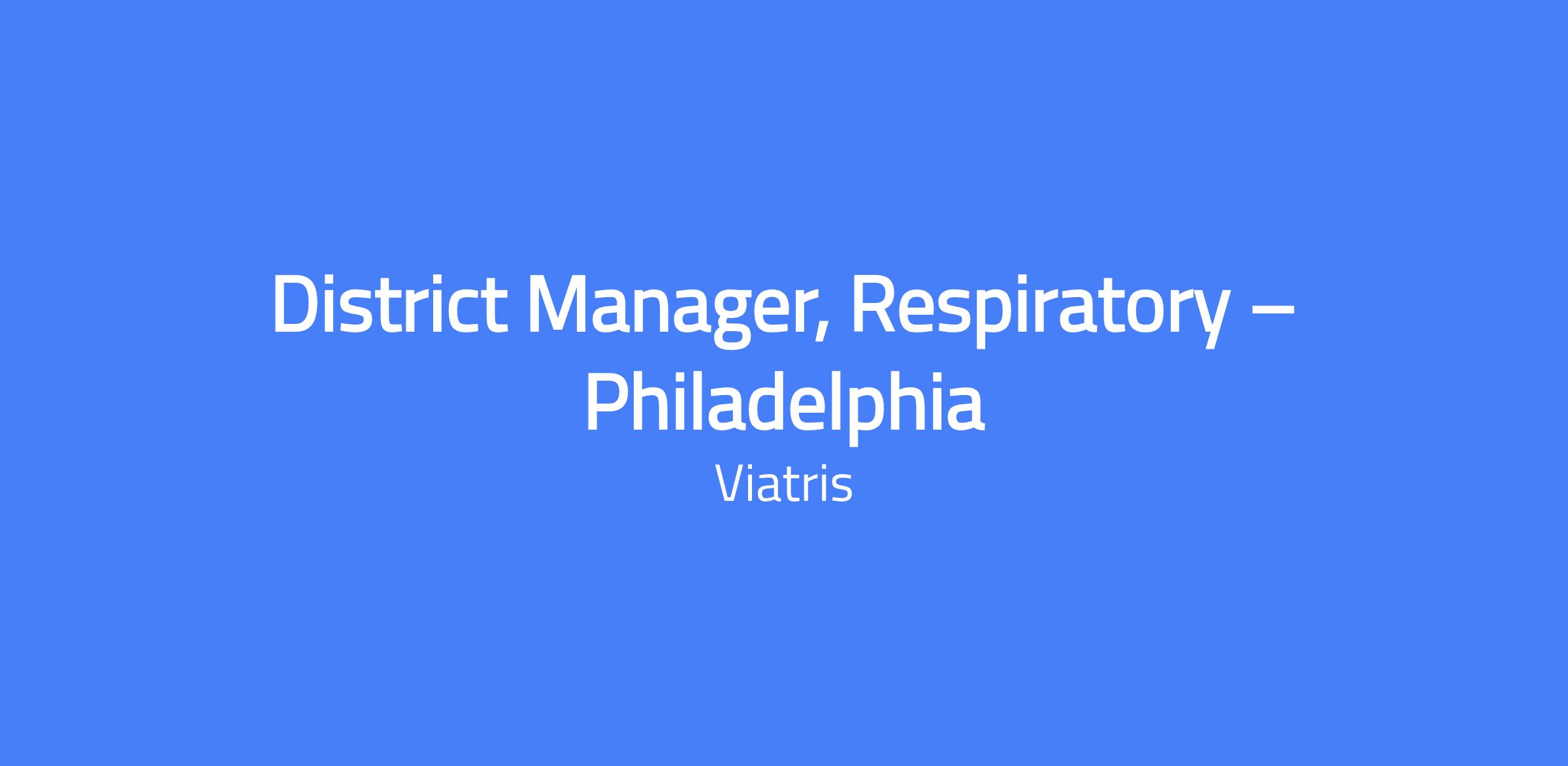 District Manager, Respiratory – Philadelphia