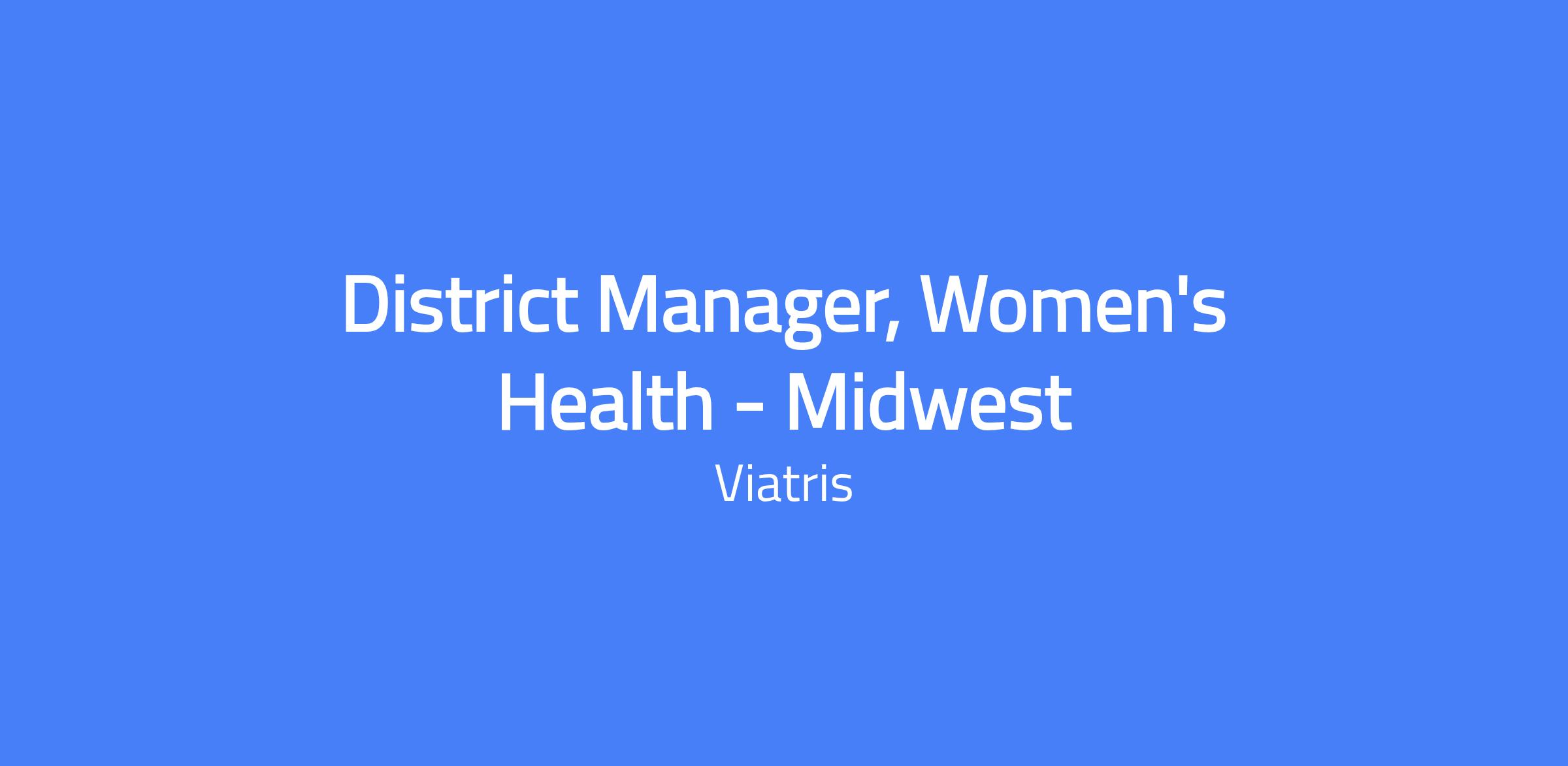 District Manager, Women's Health - Midwest. Lead the Midwest district (PA, OH, MI, IN, IL) to achieve sales and market share objectives, implement the district sales strategy, develop strong customer relationships, and build a high-performing team. Travel 60-70% is required and you must reside in the district geography.