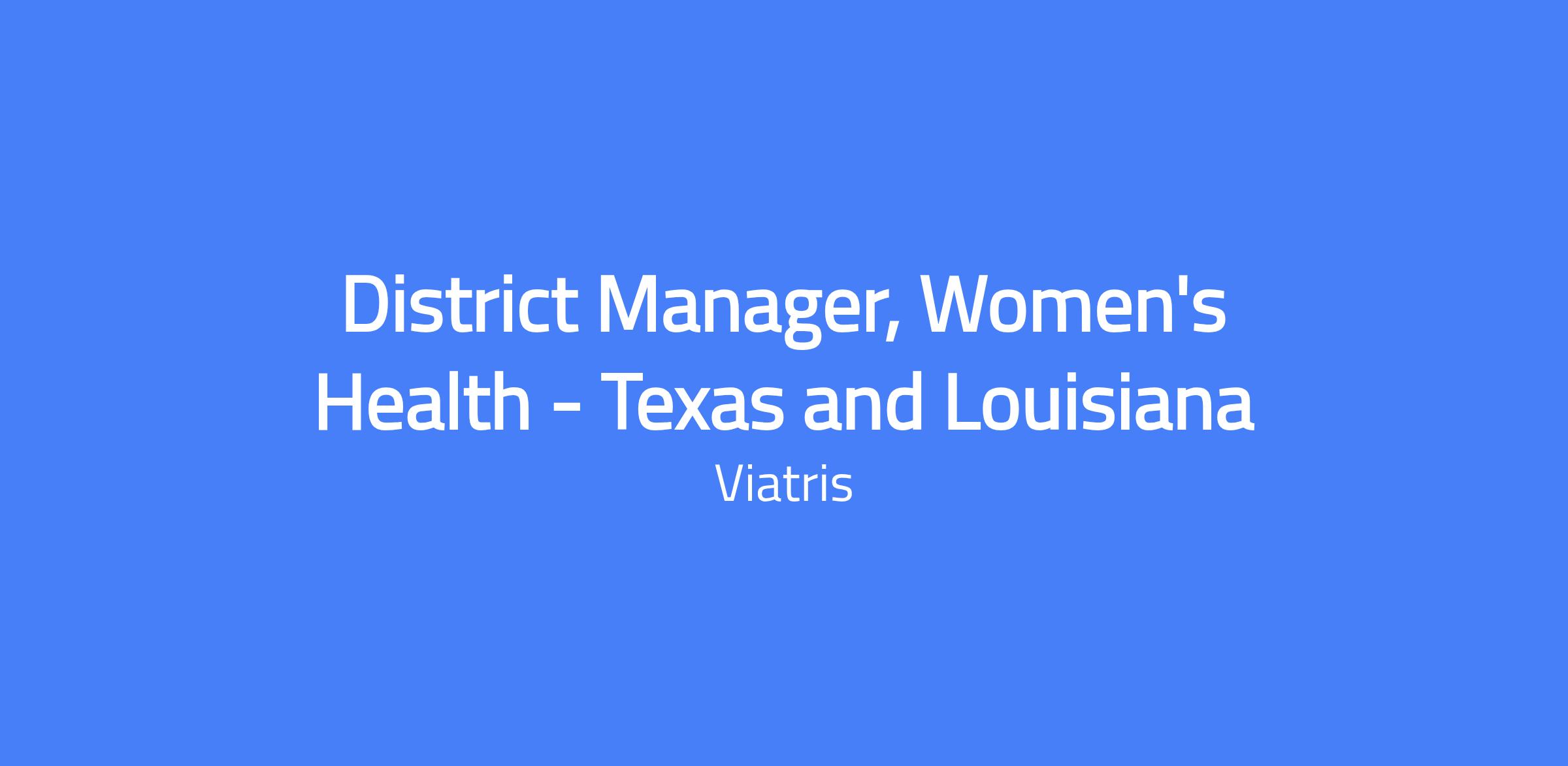 District Manager, Women's Health β Texas and Louisiana leads the district's sales strategy and team to meet or exceed annual sales and market share objectives across the Texas, Louisiana, and Mississippi markets. You will build and maintain relationships with key executives and decision makers, implement the district plan, coach and develop the sales team, and ensure compliance with company policies while driving performance and professional development.