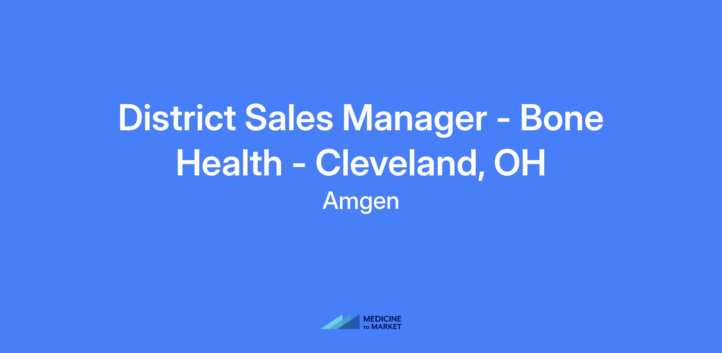 District Sales Manager – Bone Health, Cleveland, OH. The role serves as the liaison to medical professionals, providing clinical knowledge of Amgen products and leading district teams to achieve sales and budget targets within the Cleveland district and surrounding territories.