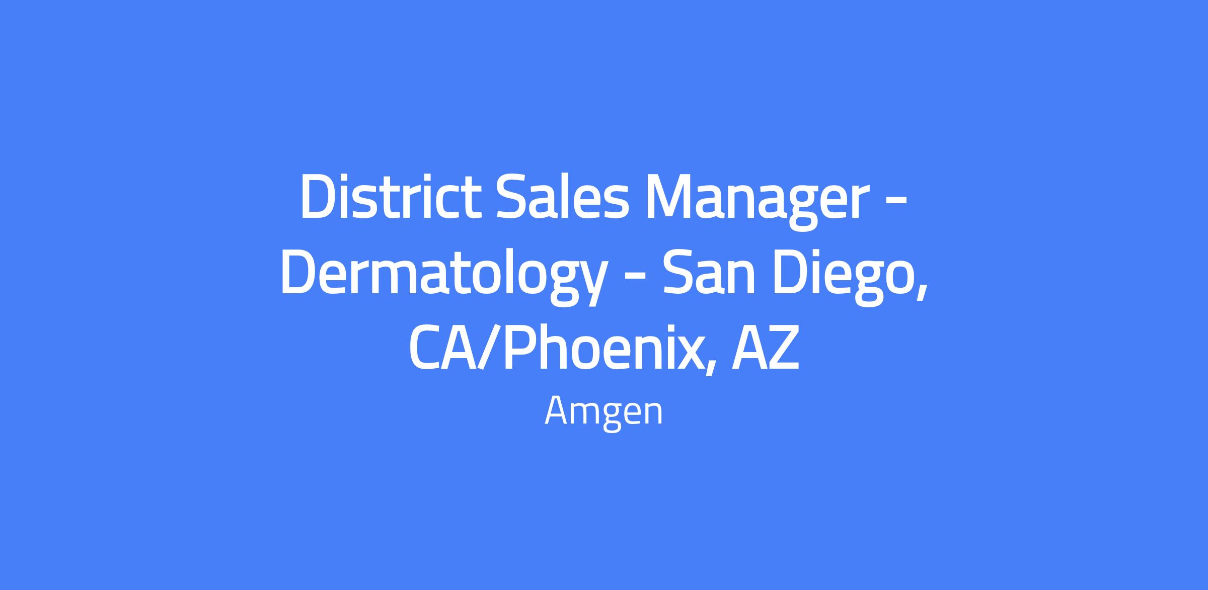 District Sales Manager for Dermatology, covering Southern California (Orange County, San Diego, Inland Empire), Arizona, New Mexico, and West Texas. The candidate should ideally live in Southern California (Orange County preferred) or Phoenix.