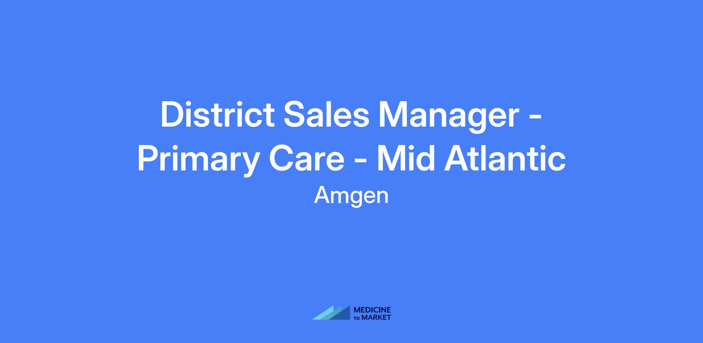 District Sales Manager – Primary Care – Mid Atlantic. Territory covers Baltimore, MD; Fairfax, VA; Harrisburg, PA; Pittsburgh, PA; Richmond, VA; Washington, DC. Relocation is not offered for this role.