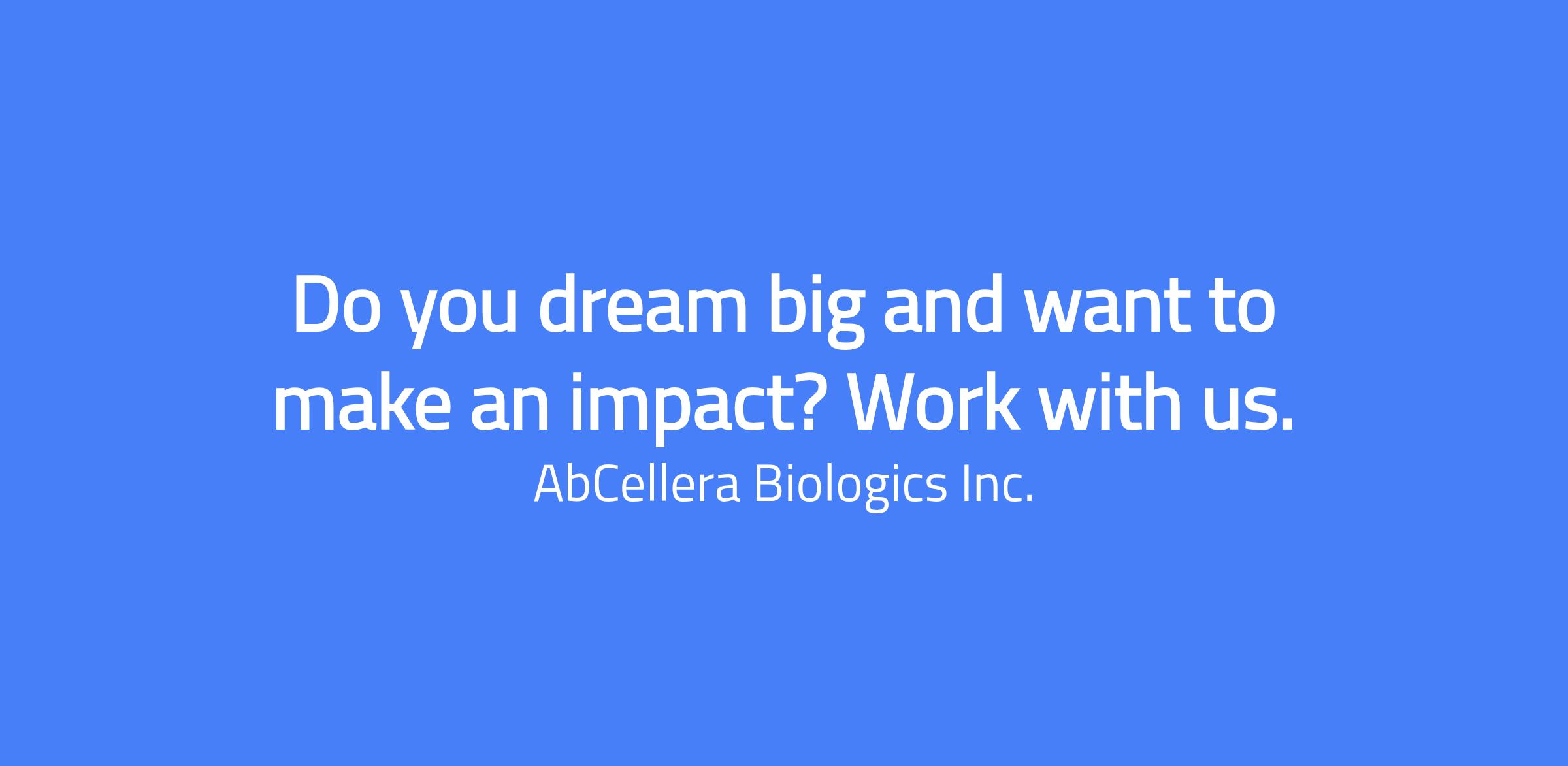 We are always interested in expanding our teams with top talent: currently focused on hiring for Protein Science, Drug Development, Manufacturing, and Quality. Also interested in people who can meaningfully contribute to these teams: Translational Biology, Engineering, Bioinformatics, Machine Learning, IT, Laboratory Management, and Software Development. We receive a large volume of applications and are only able to contact those who are selected for an interview. All communication from our Talent Discovery team will come from an @abcellera.com email address.
