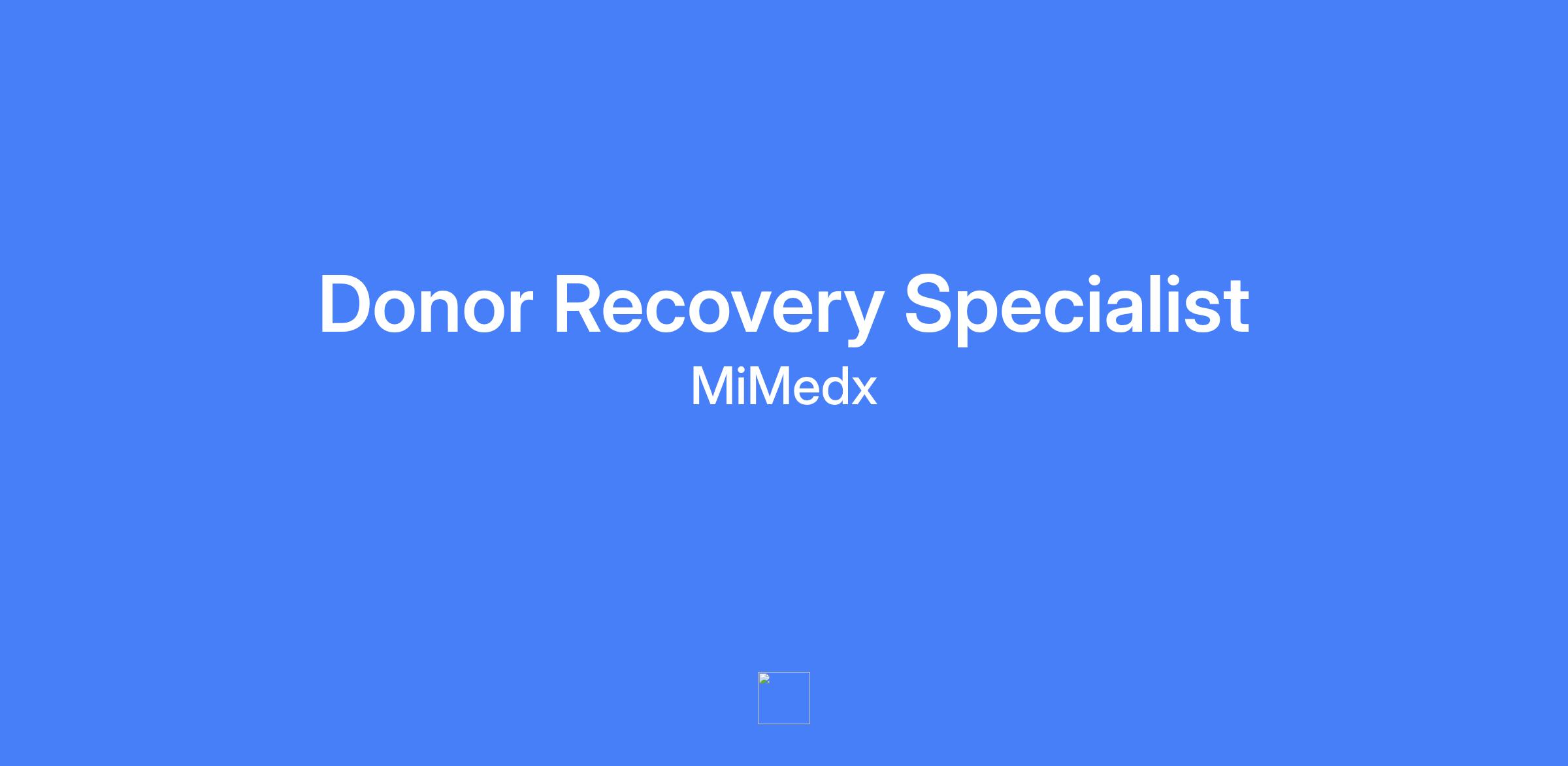 - Solely responsible for the safe and successful acquisition of all raw materials (birth tissue) to be used for MIMEDX manufacturing of products.