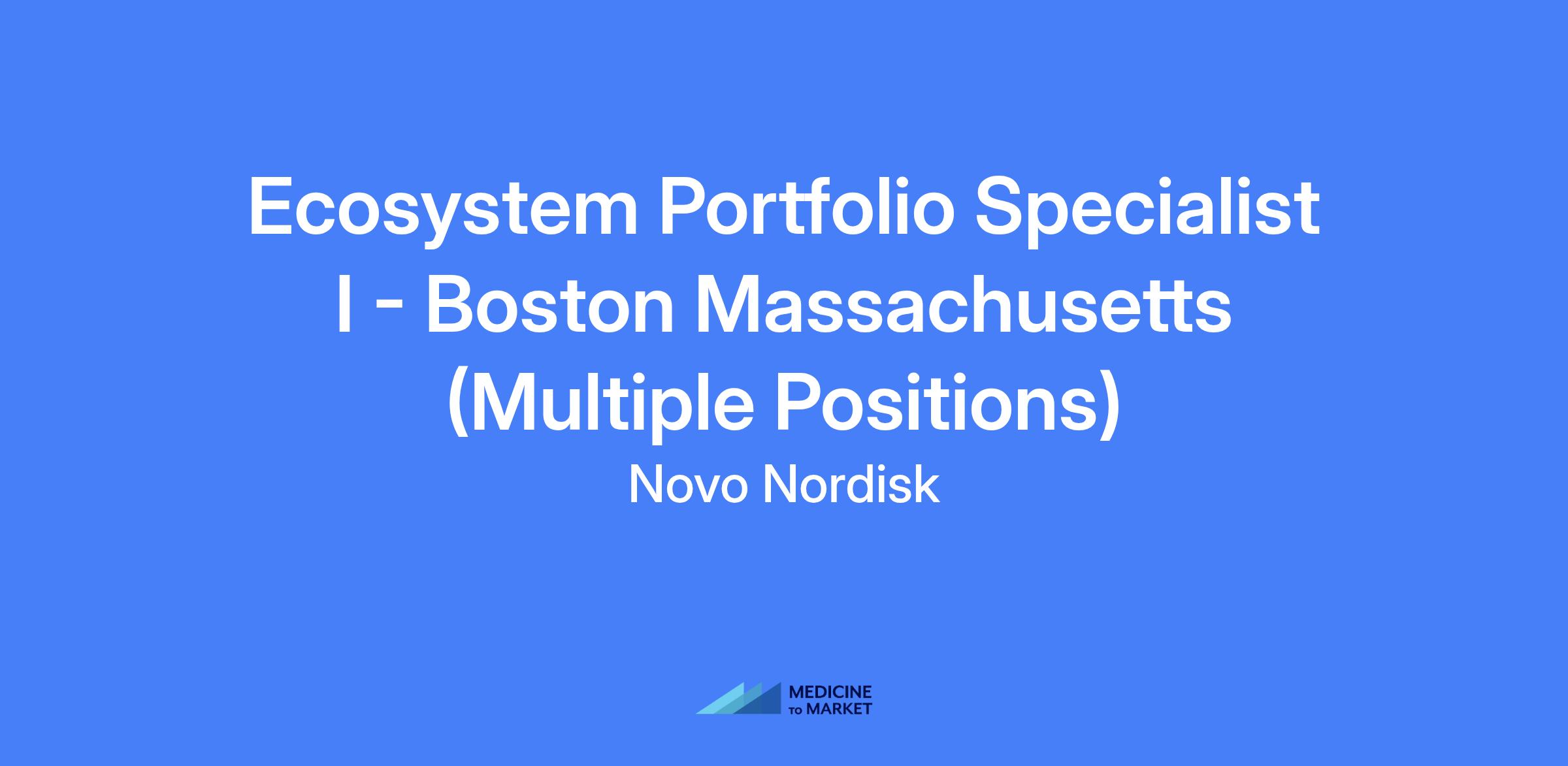 Ecosystem Portfolio Specialist I - Boston Massachusetts (Multiple Positions) responsible for promoting Novo Nordisk's cardiometabolic product portfolio to healthcare providers and influencers, achieving sales targets, and optimizing health system account strategies within a defined geographic area.
