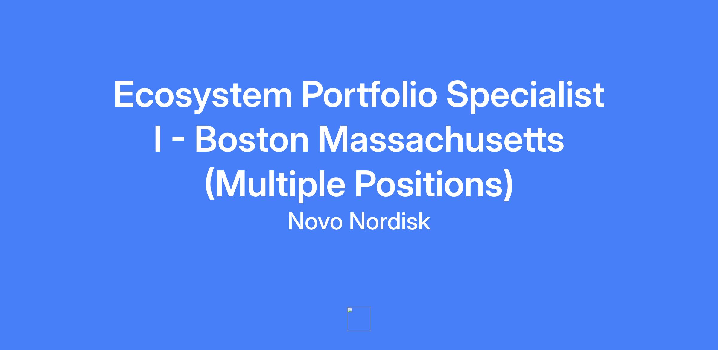 Ecosystem Portfolio Specialist I - Boston Massachusetts (Multiple Positions) responsible for promoting Novo Nordisk's cardiometabolic product portfolio to healthcare providers and influencers, achieving sales targets, and optimizing health system account strategies within a defined geographic area.