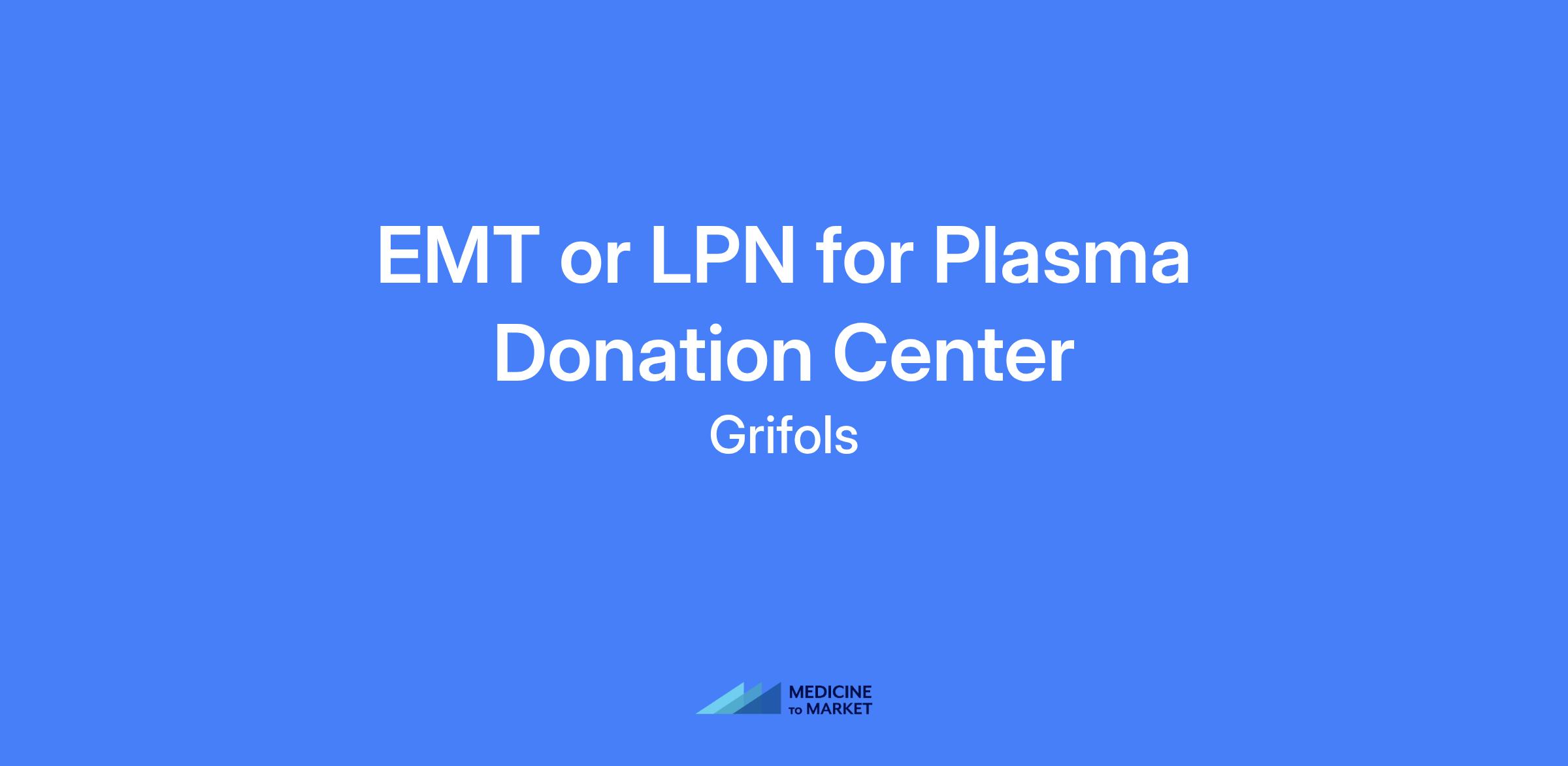 Seeking EMT Basic, EMT Advanced, Paramedic, LVN / LPN, or RN for Plasma Donation Center!