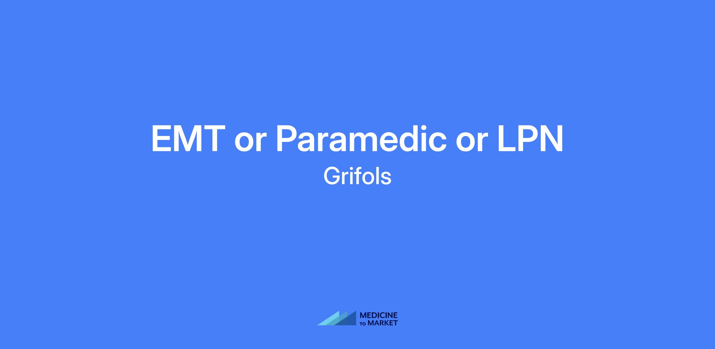Center Medical Specialist position for EMT Basic, Advanced EMT, Paramedic, or LPN at Grifols Plasma Donation Center. This role focuses on donor medical assessment, education, and safety in a fast-paced plasma donation environment. The position requires bilingual English/Spanish communication and licensure/certification as a healthcare professional, with responsibilities that include donor evaluation, education, and maintaining confidentiality.