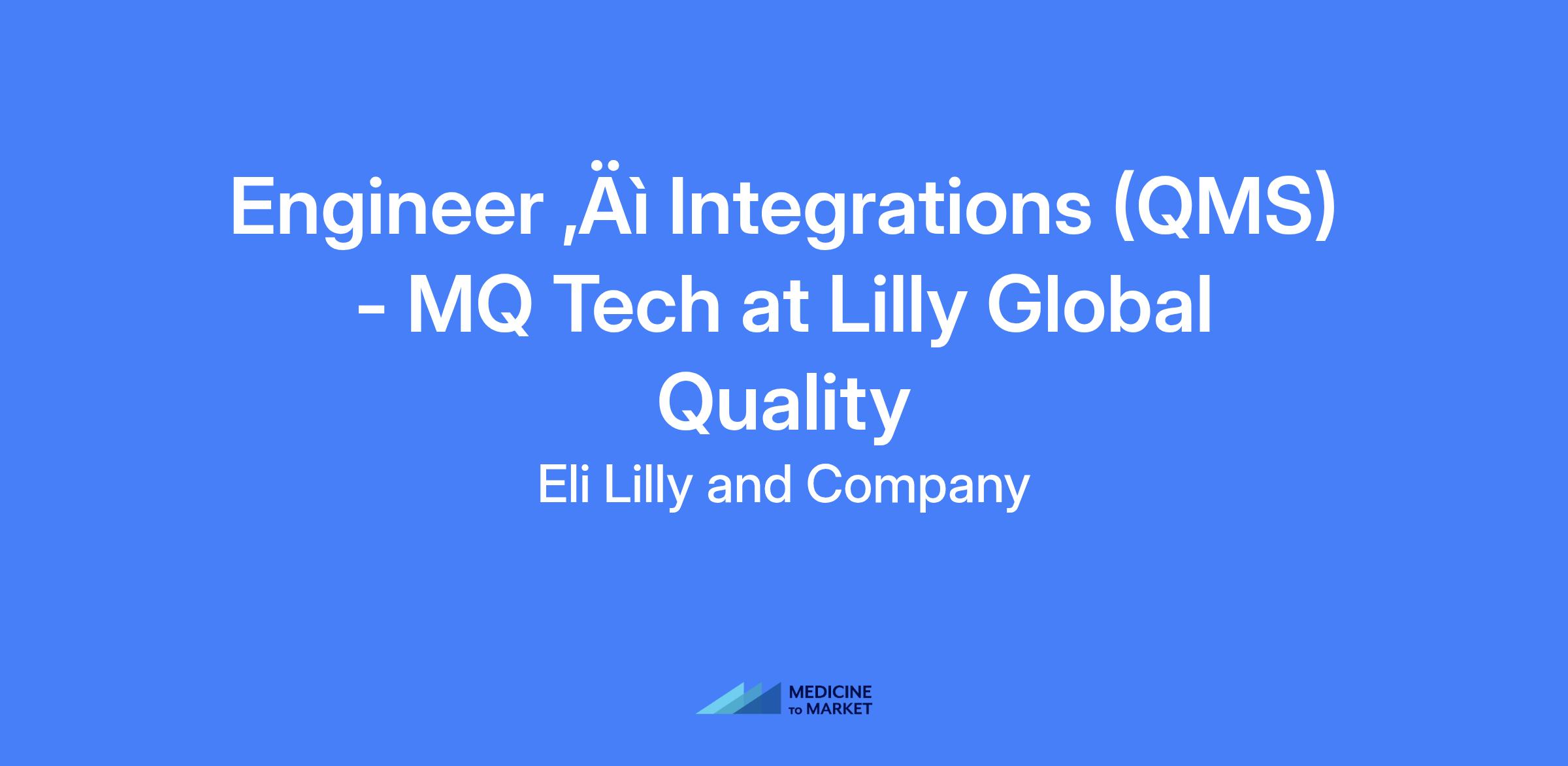 Engineer – Integrations, QMS at Lilly Global Quality. Responsible for designing, developing, and maintaining integration systems that connect Veeva QMS and related platforms, supporting the Integrated Data Repository (Operational Data Store), and ensuring systems are robust, secure, and aligned with enterprise standards.