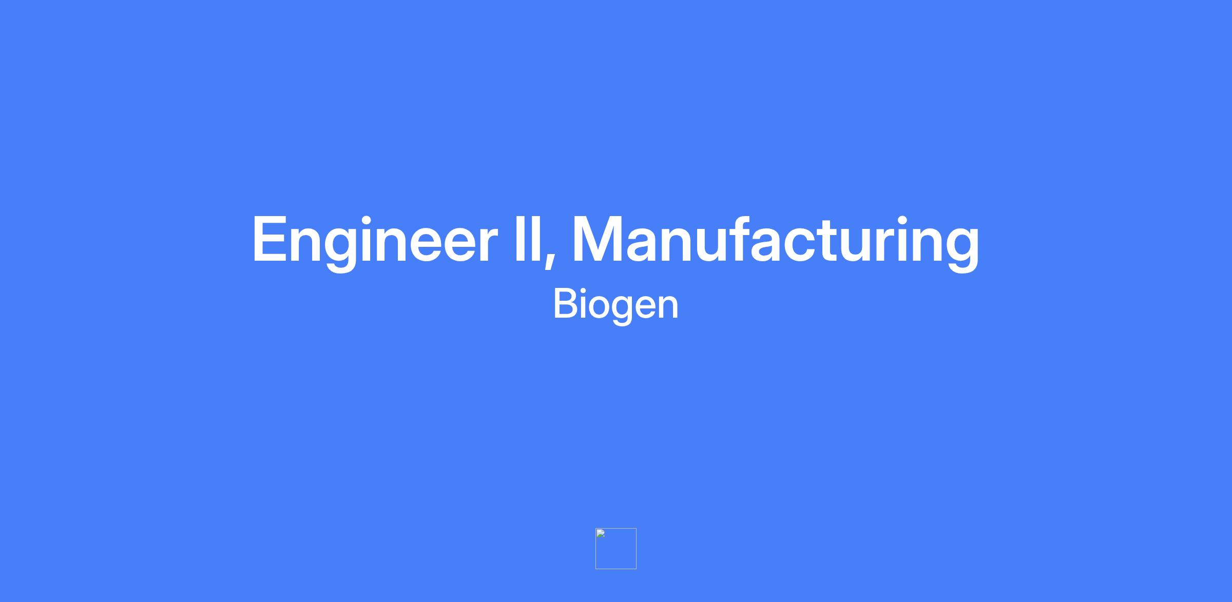 Engineer II, Manufacturing – provide critical equipment support and engineering technical troubleshooting for drug substance manufacturing equipment. Manage small engineering projects with guidance, participate in cross-functional teams to implement change, and contribute to new product Tech Transfer activities and investigations. Support design, specification, and installation of new equipment and modifications to existing systems to impact quality and reliability of manufacturing operations.