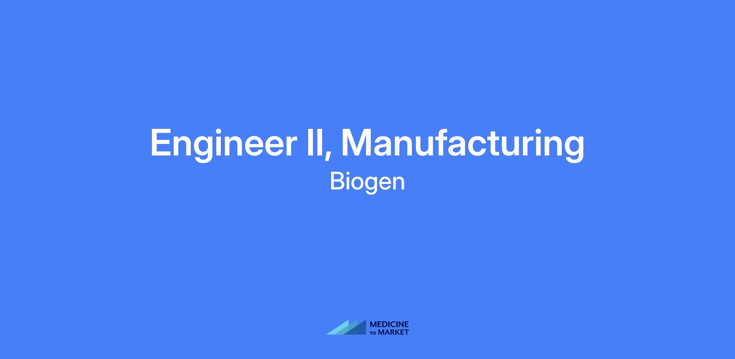 Engineer II, Manufacturing – provide critical equipment support and engineering technical troubleshooting for drug substance manufacturing equipment. Manage small engineering projects with guidance, participate in cross-functional teams to implement change, and contribute to new product Tech Transfer activities and investigations. Support design, specification, and installation of new equipment and modifications to existing systems to impact quality and reliability of manufacturing operations.