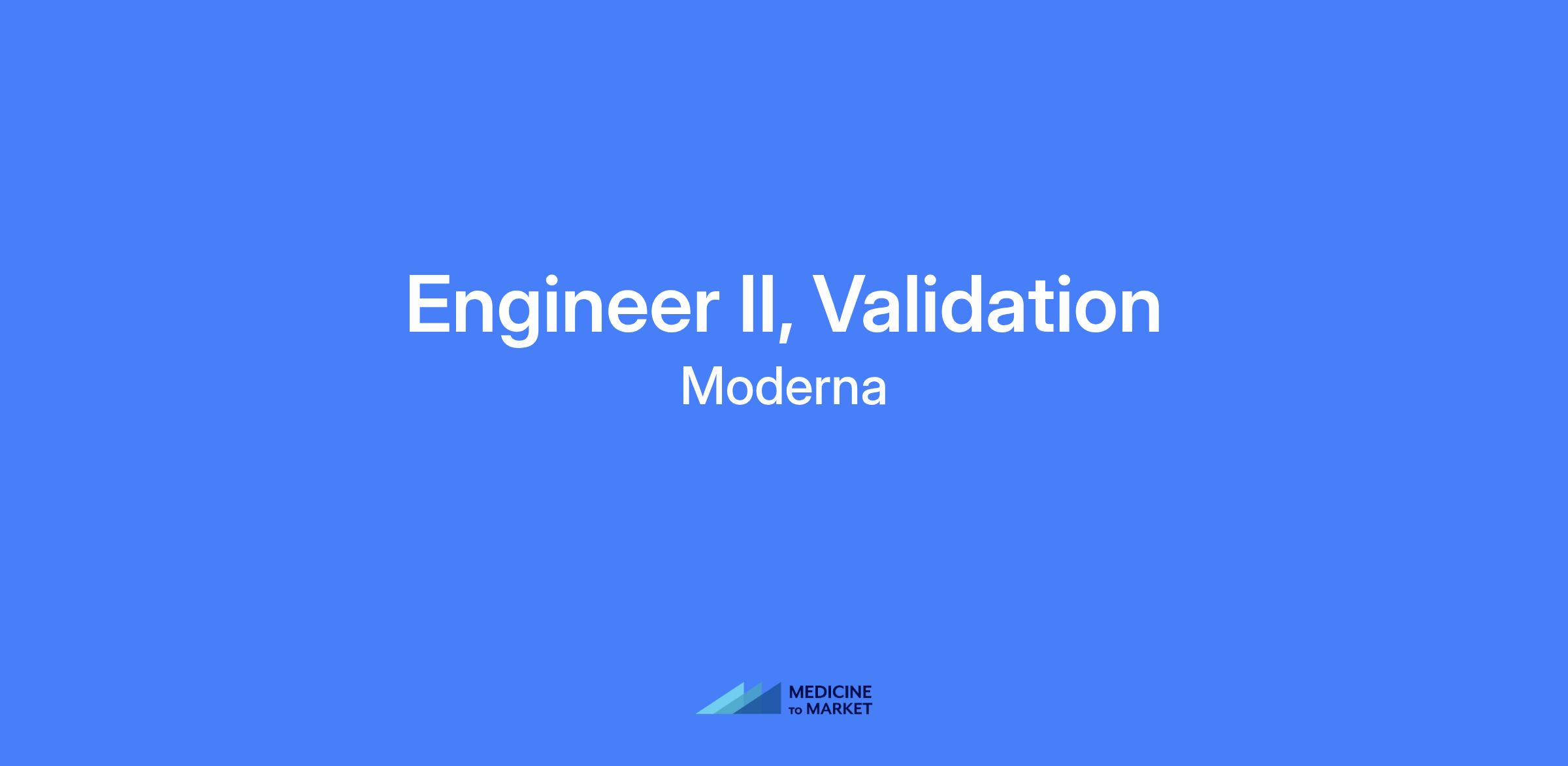 Engineer II, Validation — perform commissioning, qualification and validation activities within the Moderna CQV program, owning delivery of capital projects, site re-qualification and periodic review programs to ensure systems and equipment remain in a state of compliance.