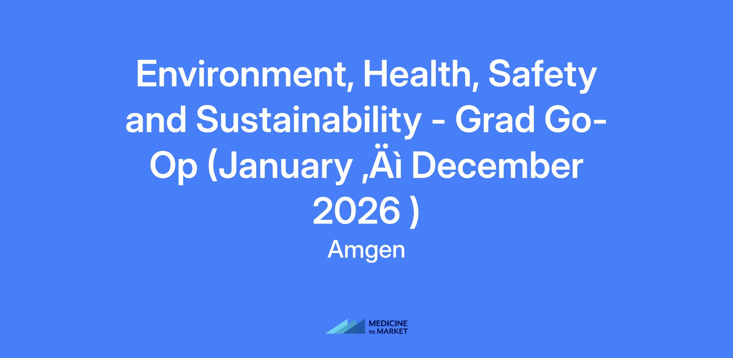 Environment, Health, Safety and Sustainability - Grad Go-Op (January – December 2026). Six-month Co-Op assignment within Amgen’s EHSS department at the Thousand Oaks, CA headquarters.