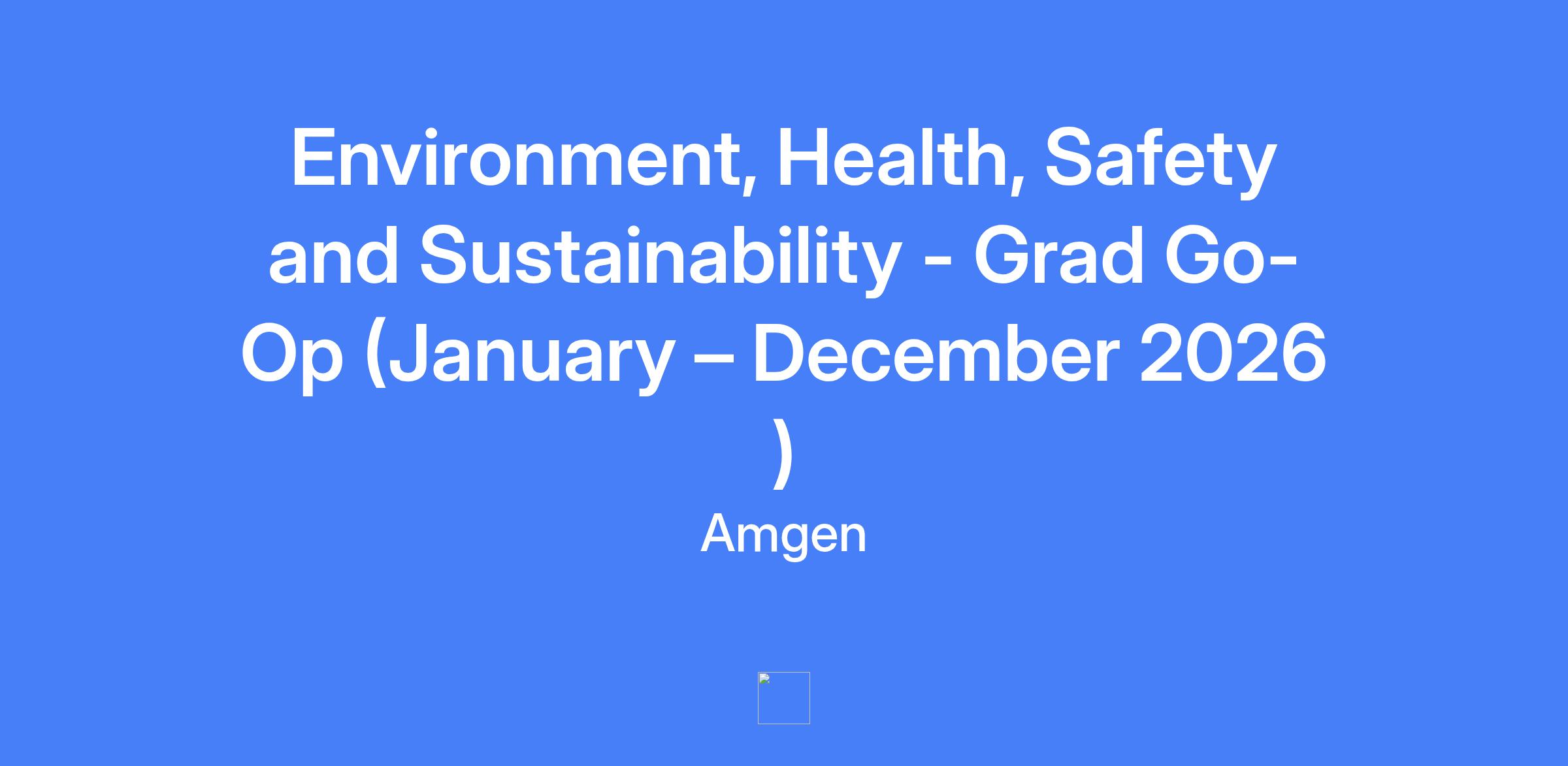 Environment, Health, Safety and Sustainability - Grad Go-Op (January – December 2026). Six-month Co-Op assignment within Amgen’s EHSS department at the Thousand Oaks, CA headquarters.