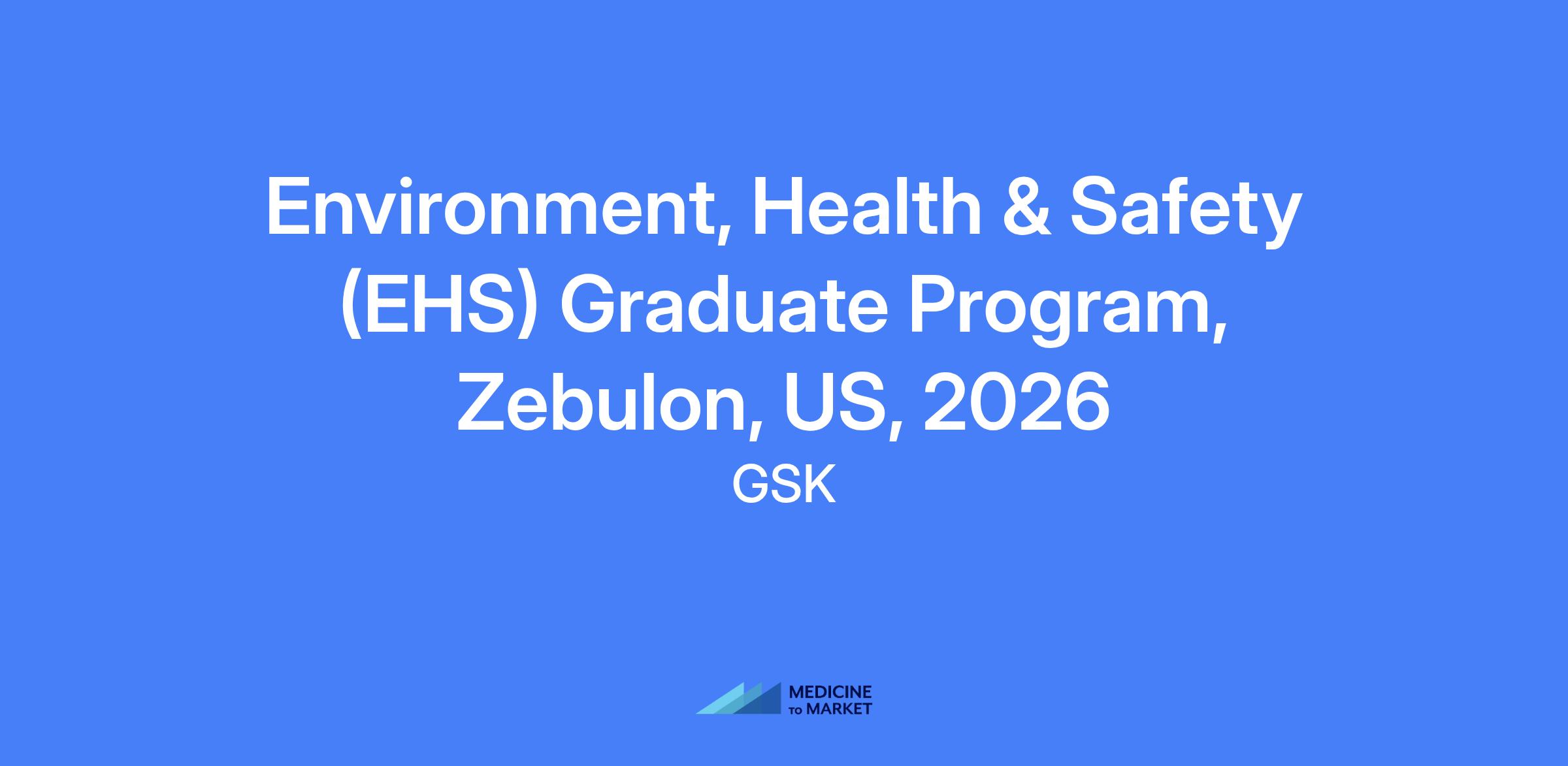 Environment, Health & Safety (EHS) Graduate Program at GSK βΓΓ¬ US, 2026. Two-year program designed to prepare you for future technical, operational and engineering roles within Global Supply Chain, with a focus on EHS and sustainability.