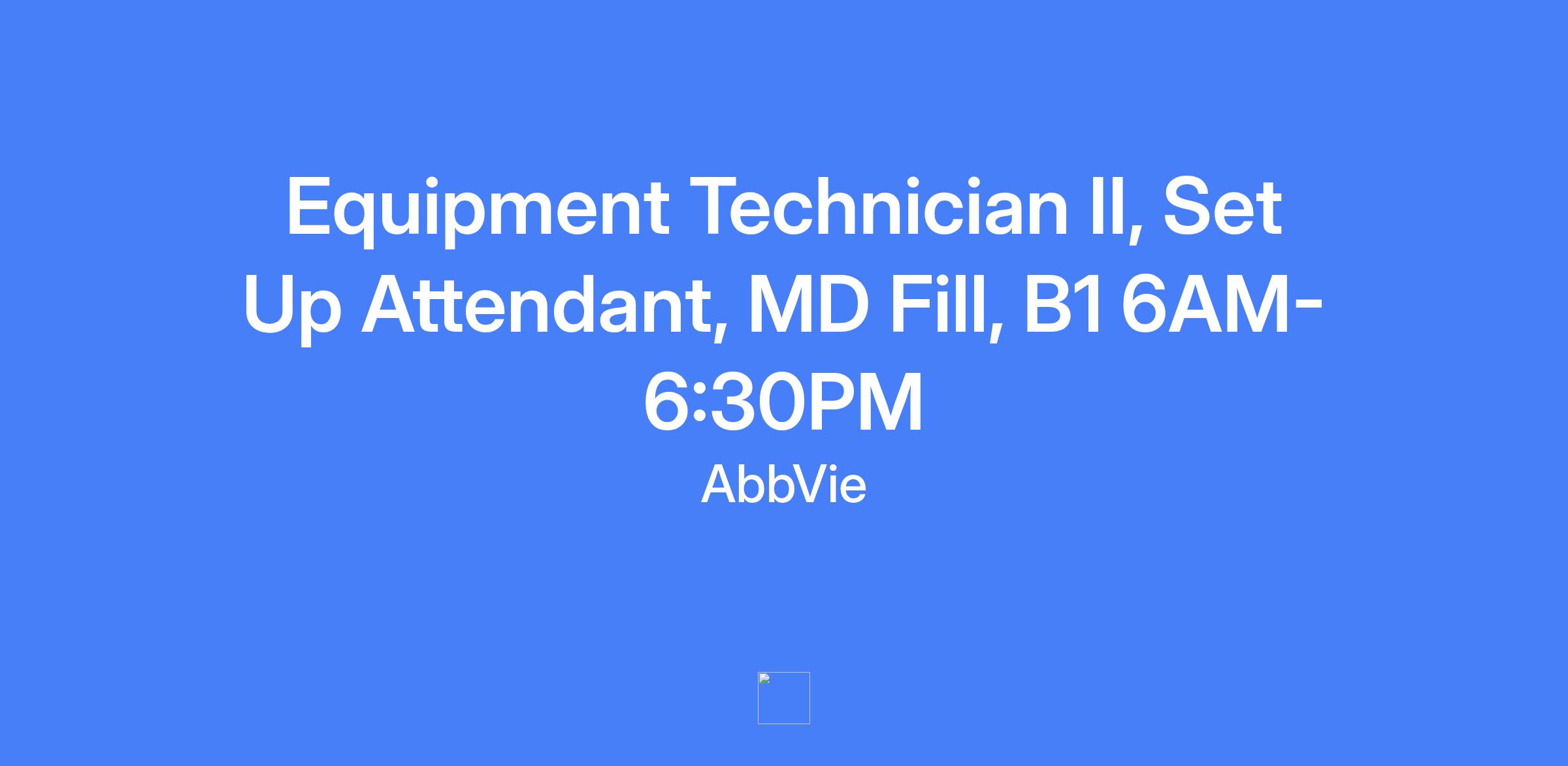 Equipment Technician II, Set Up Attendant, MD Fill, B1 6AM-6:30PM. Responsible for the preparation and/or operation of various components, materials, equipment, machines in the assigned area(s). Performs tasks in accordance with GMPs and department SOPs to maintain product integrity and quality standards. This role is on the B1 Shift: 6AM-6:30PM Thursday/Friday/Saturday & every other Wednesday.