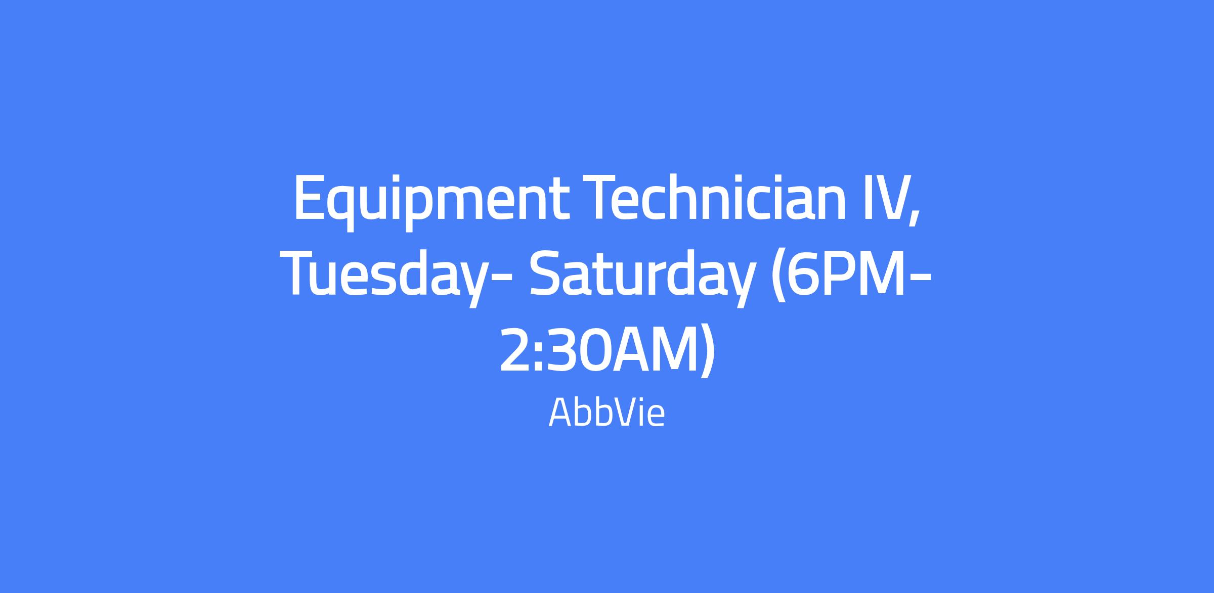 Equipment Technician IV responsible for maintenance and repair of production and packaging equipment to support on-time delivery, while complying with quality standards and safety requirements. Diagnoses equipment to determine repair needs, performs repairs in a timely manner, and maintains equipment functionality through the preventative maintenance program in a cGMP environment.