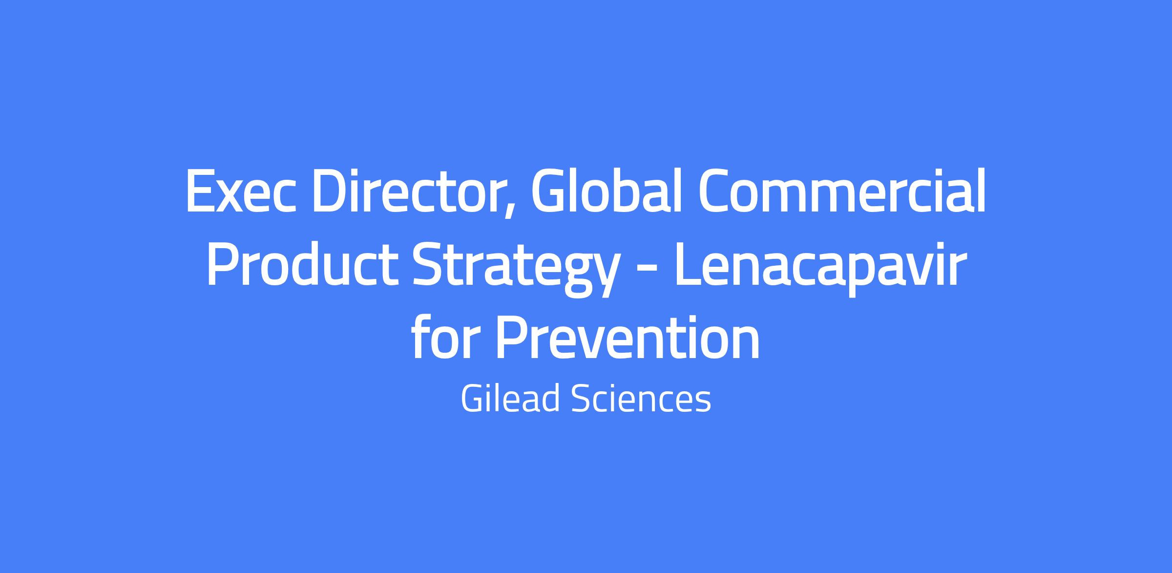 The Executive Director, Global Commercial Product Strategy for Lenacapavir for Prevention is responsible for shaping and leading the global commercial vision, strategy, and execution for one of Gileadโs most important long-acting HIV prevention portfolios. This leader will oversee global commercial launch of lenacapavir for HIV prevention and guide early commercial planning for future lenacapavir prevention assets in the pipeline. The role drives cross-functional alignment, regional partnership, market development, and launch excellence to enable sustained global growth. This position requires a strategic, collaborative leader with deep global commercial expertise, strong cross-functional leadership capabilities, and a passion for advancing HIV prevention worldwide.