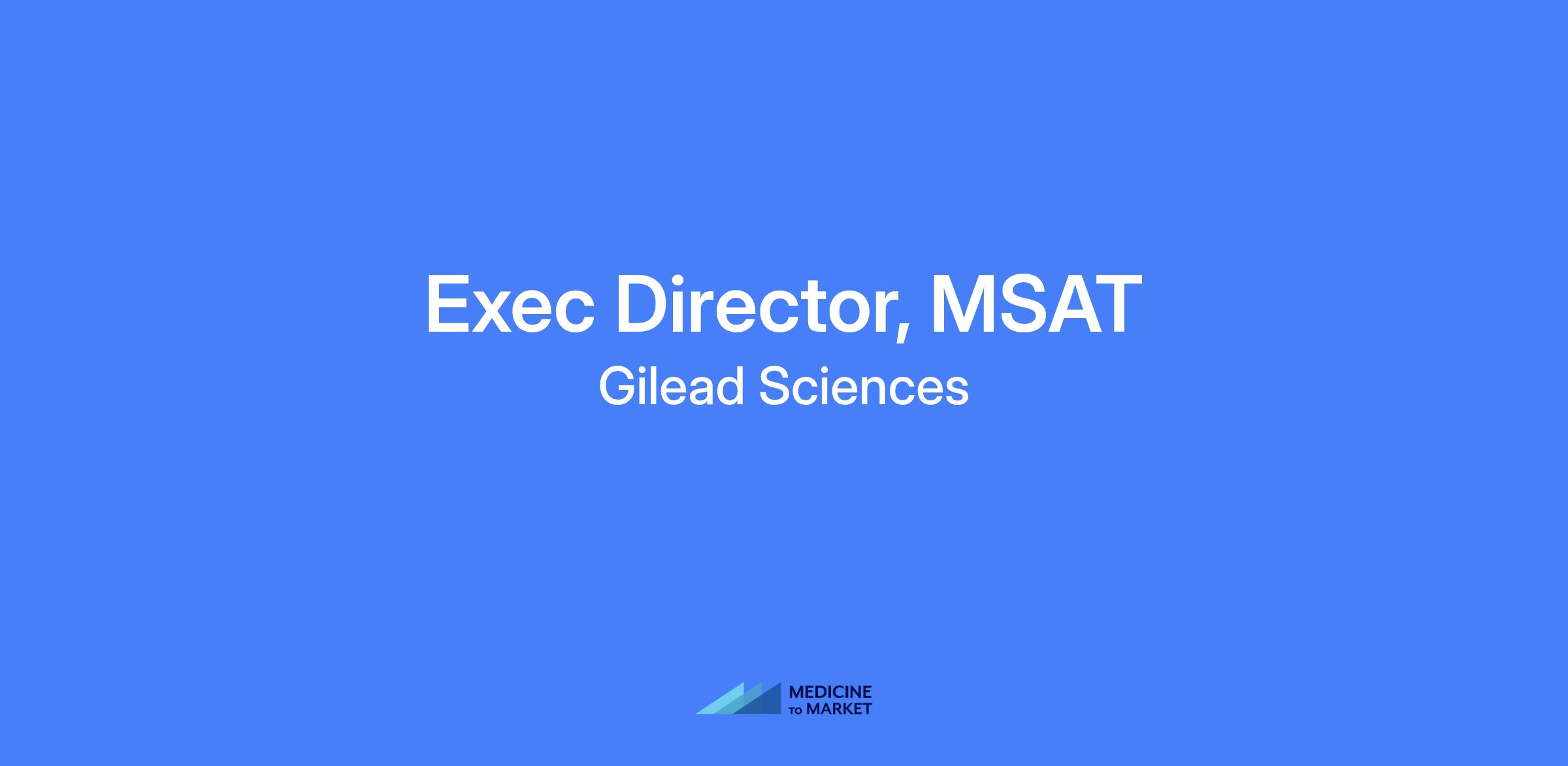 Exec Director, MSAT at Gilead. Lead and oversee tech transfer, validation, and MSAT functions to support rapid, compliant product introductions and ongoing manufacturing excellence. Drive strategic direction, staff development, and cross-functional collaboration to ensure GMP/GDP compliance and effective technology transfer across sites.