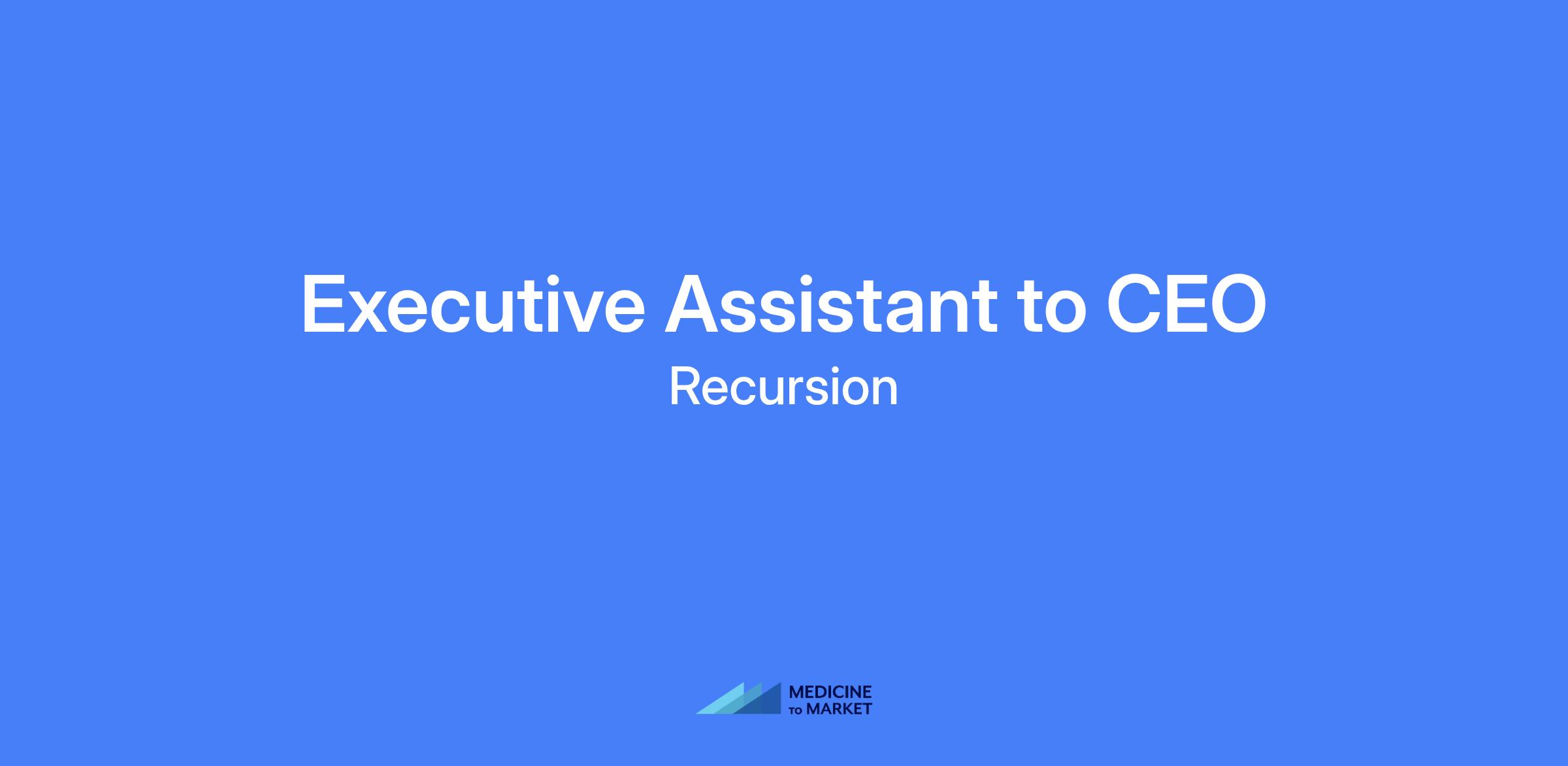 Executive Assistant to the CEO. Support a visionary leader driving innovation to get better drugs to patients faster. Enable the CEO to operate at maximum effectiveness by managing priorities, streamlining operations, and anticipating needs across a fast-paced ecosystem. Influence the CEO’s ability to focus on decoding biology to industrialize drug discovery.