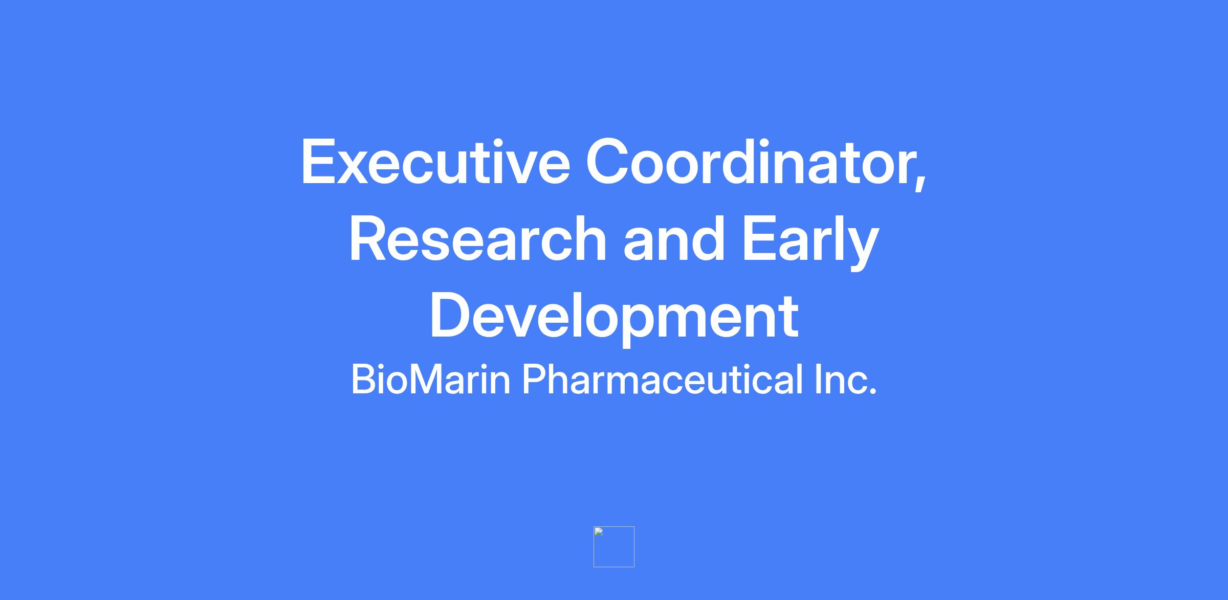 Executive Coordinator, Research and Early Development. Provides administrative support to senior staff in Research, including scheduling governance and other meetings, and supports Sr. Staff by coordinating logistics for meetings and travel.