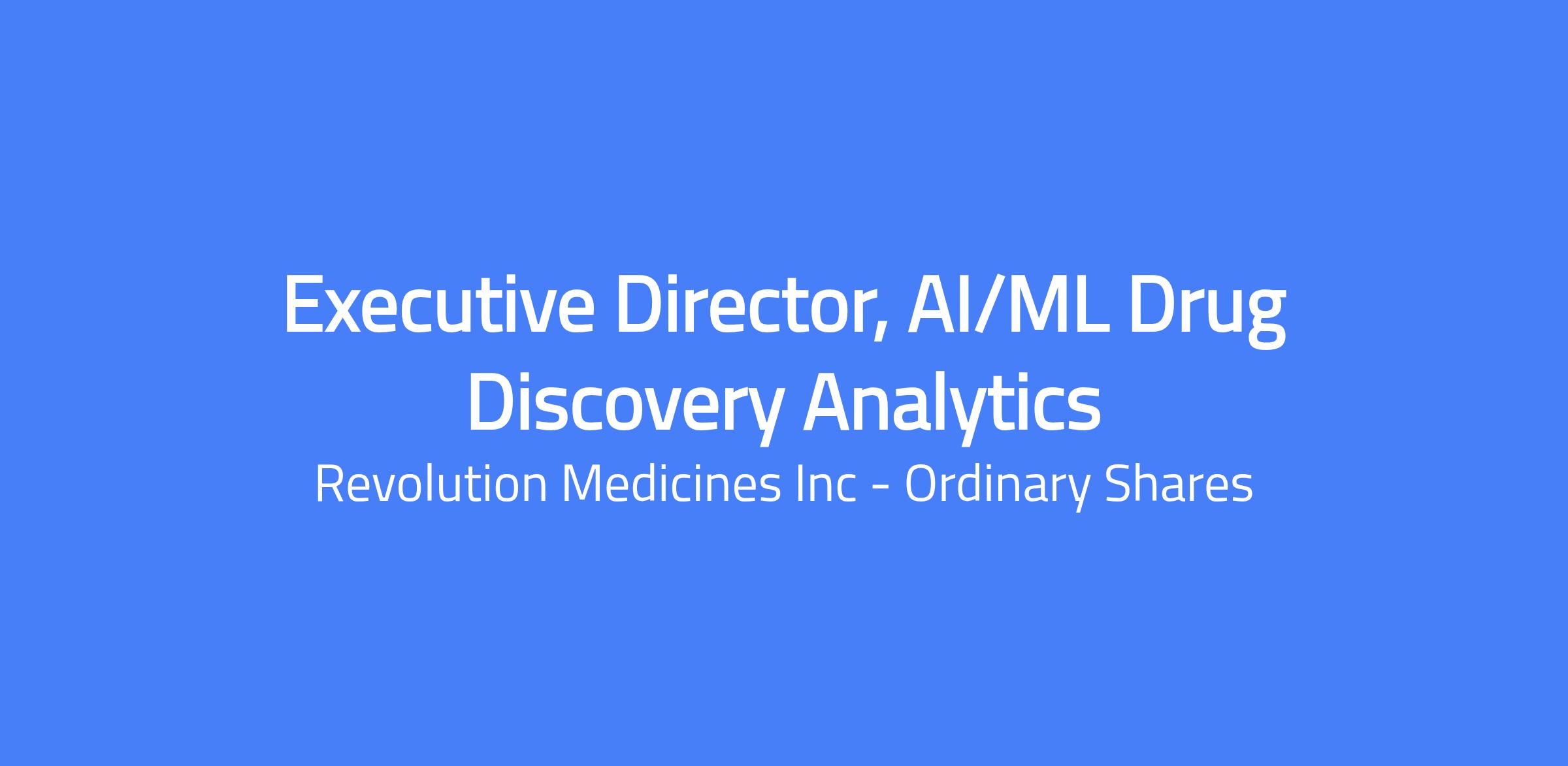 As Executive Director, AI/ML Drug Discovery Analytics, you will be a senior leader shaping the future of data-driven drug discovery at Revolution Medicines. You will define the Research’s AI/ML strategy, oversee implementation of advanced analytics across discovery and build a world-class team to unlock the full potential of our rich internal datasets and make these insights accessible to other scientist. Your leadership will directly influence early discovery innovation, pipeline acceleration, and strategic portfolio decisions.
