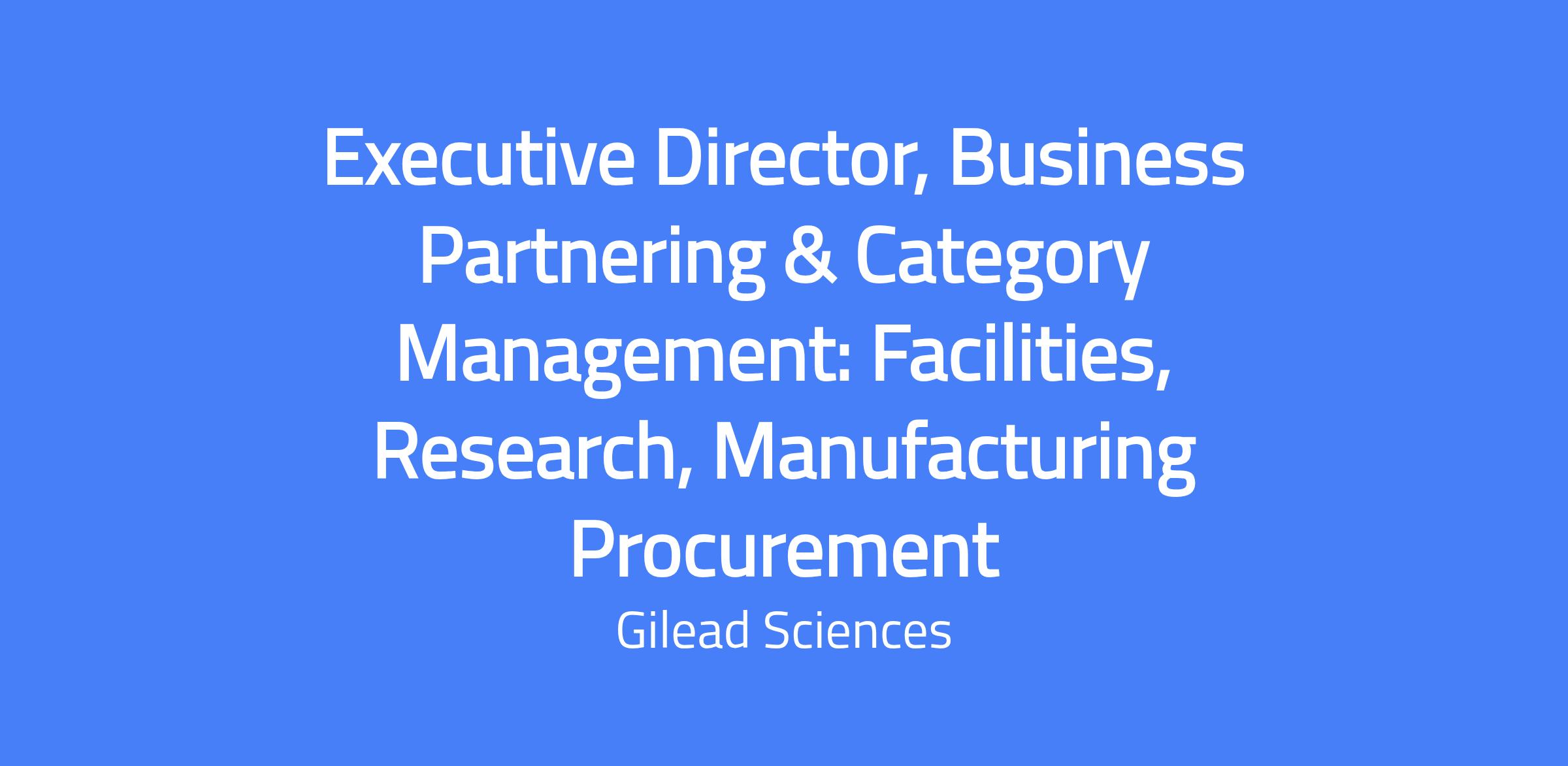 Executive Director, Business Partnering & Category Management: Facilities, Research, Manufacturing Procurement