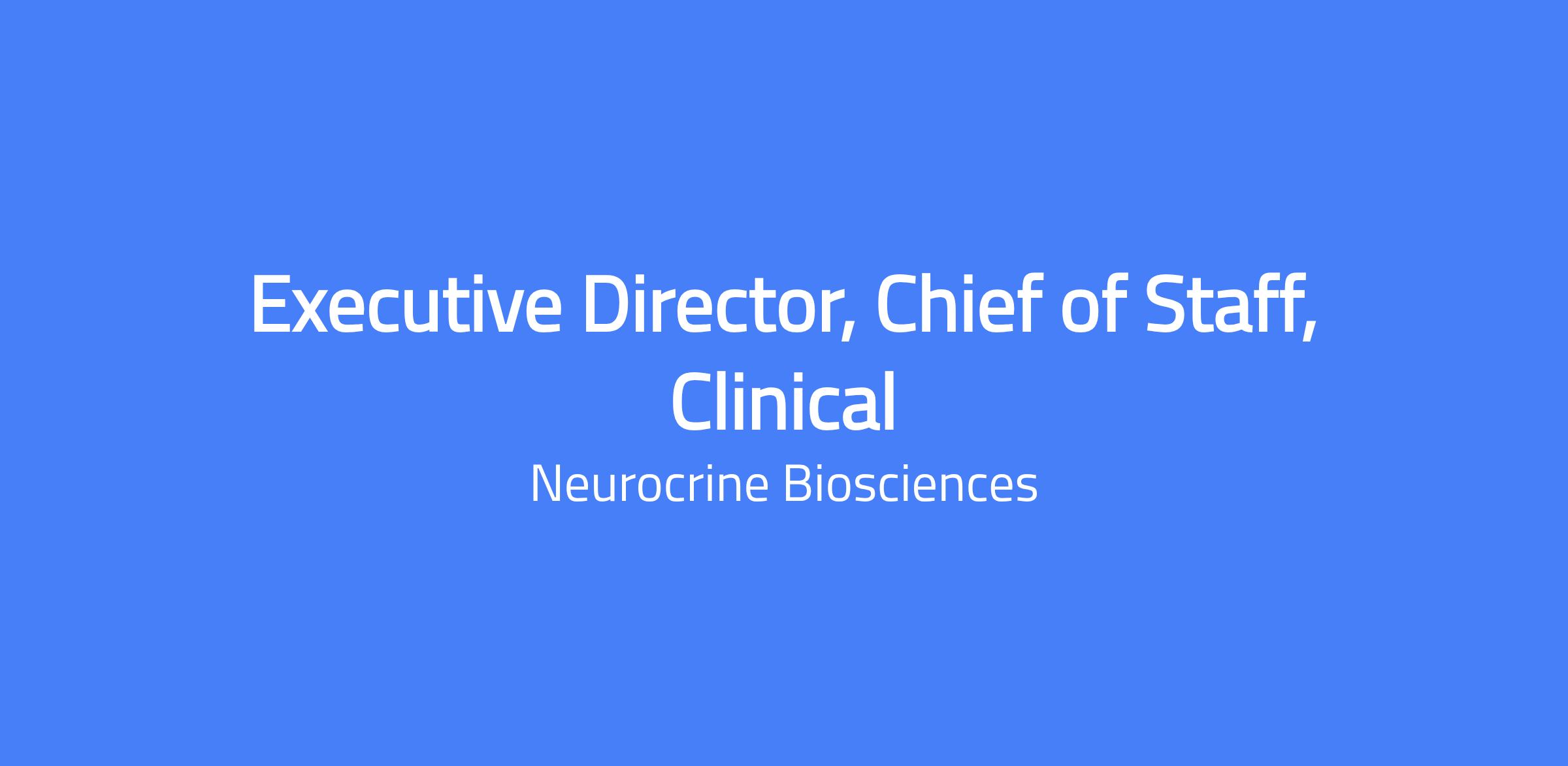 Executive Director, Chief of Staff, Clinical is a senior Strategic Operations role within Neurocrine Biosciences that partners with the Chief Medical Officer and Clinical/Medical Affairs leadership to articulate an aligned, department-wide strategic plan aligned with organizational objectives. The role supports the execution of short- and long-term vision and strategic plans as a key member of the Medical Senior Leadership Team.
