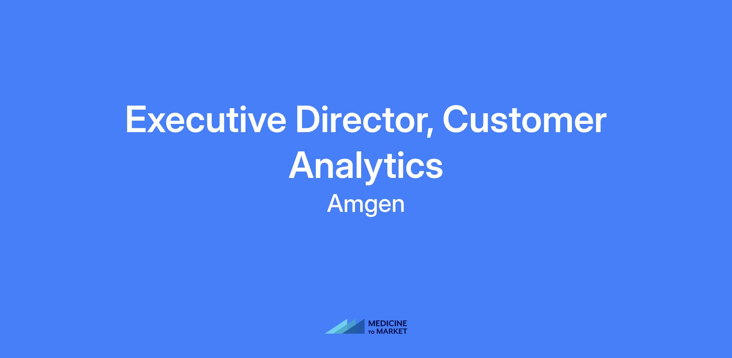 Executive Director, Customer Analytics at Amgen. Build and lead a highly analytical team to deliver actionable insights enabling Amgen brands to serve more patients. Oversee secondary and subnational analytics, including strategic targeting, specialty pharmacy/PSP analytics, and reporting across the US organization. Partner with senior leaders to drive evidence-based decision making and maximize business impact.