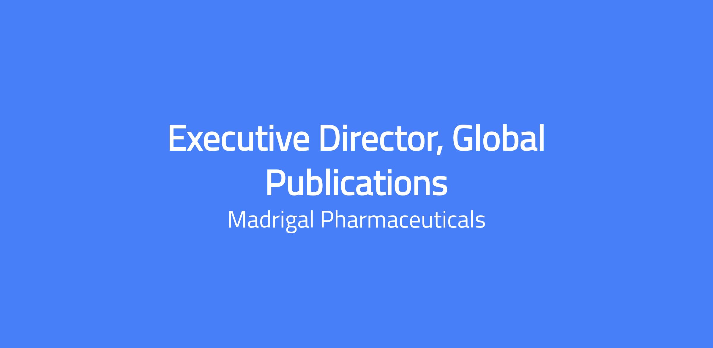 The Executive Director, Global Publications provides enterprise-wide strategic leadership for the development, governance, and execution of the global scientific publications program within Medical Affairs at Madrigal Pharmaceuticals. This role defines the long-term publications strategy and ensures alignment with corporate medical strategy, asset lifecycle planning, and global scientific communications objectives, while maintaining full regulatory, legal, and industry compliance.