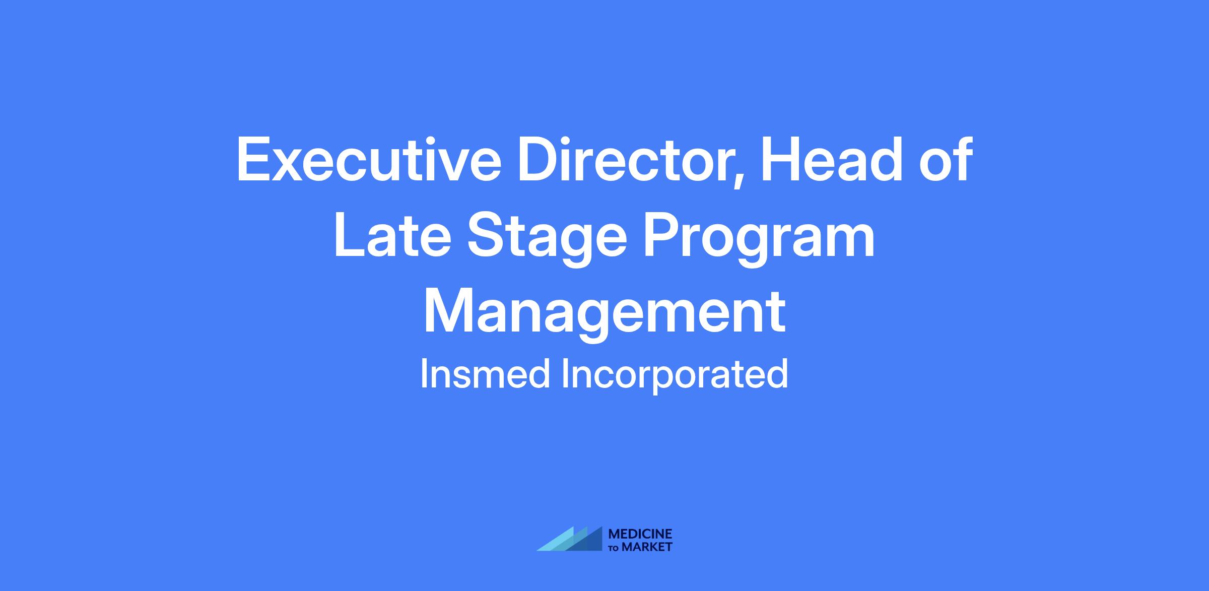 Executive Director, Head of Late Stage Program Management. Responsible for creating a best-in-class team to plan, integrate and lead activities associated with moving Insmed’s late-stage pipeline through clinical development, regulatory submissions and commercial launch. Ensures strategic guidance, operational translation of the program strategy, options analysis and communication for global cross-functional projects, and may lead major programs.
