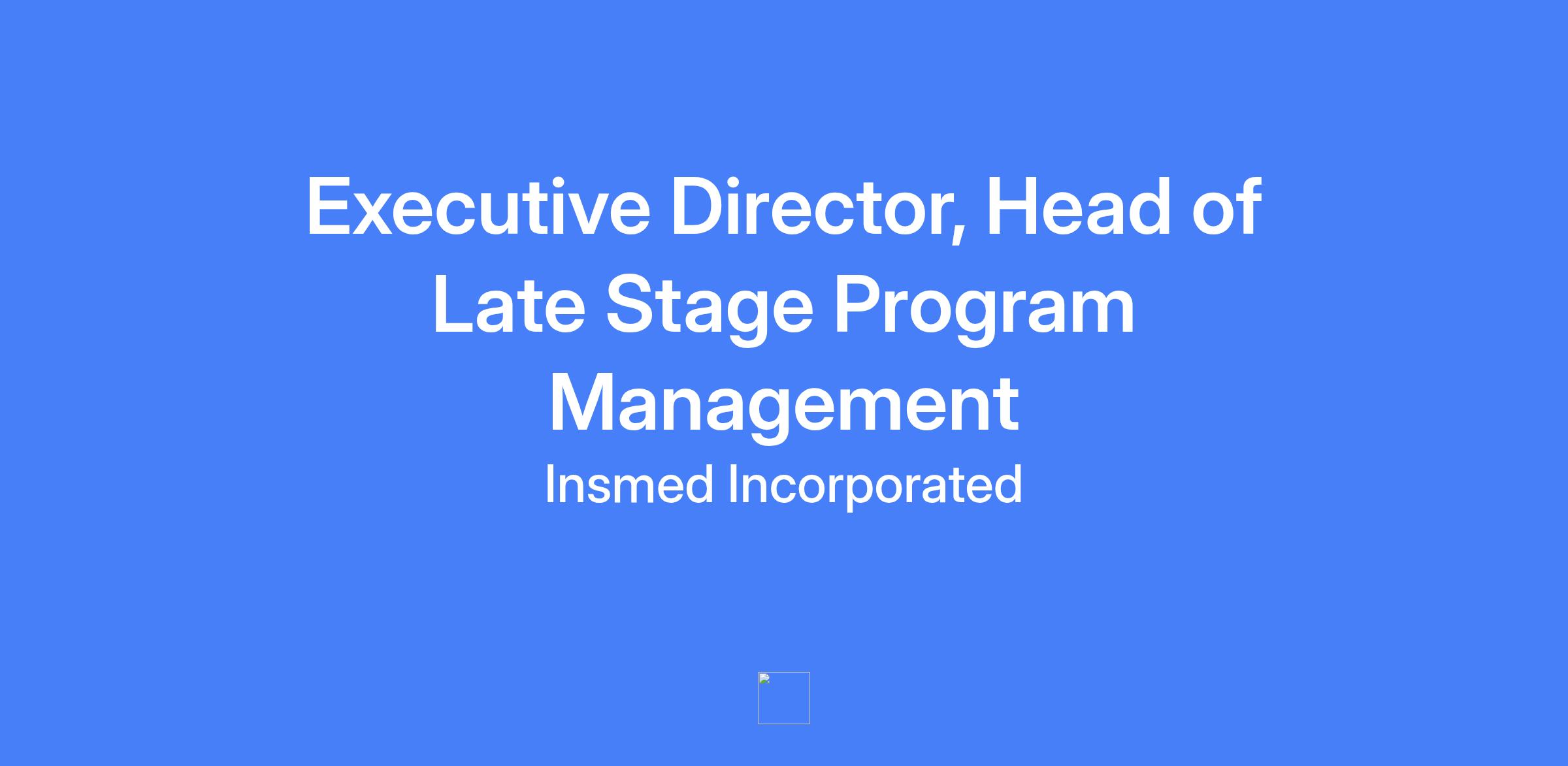 Executive Director, Head of Late Stage Program Management. Responsible for creating a best-in-class team to plan, integrate and lead activities associated with moving Insmed’s late-stage pipeline through clinical development, regulatory submissions and commercial launch. Ensures strategic guidance, operational translation of the program strategy, options analysis and communication for global cross-functional projects, and may lead major programs.