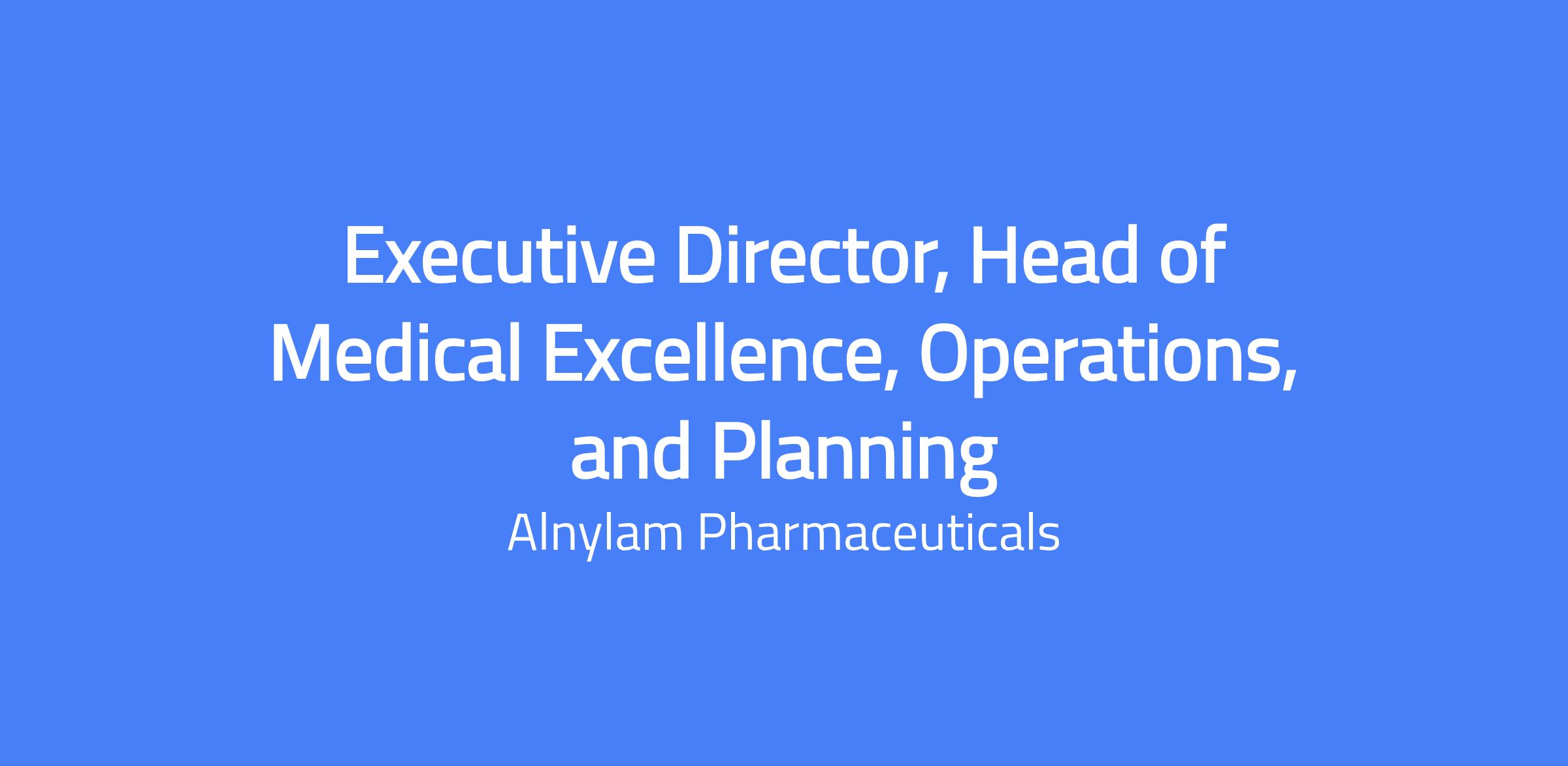 Executive Director, Head of Medical Excellence, Operations, and Planning is a senior operational and strategic leader within Global Medical Affairs and a key member of the Medical Affairs Leadership Team (MALT). They hold primary accountability for defining and driving the Medical Affairs Operations and Excellence strategy globally, overseeing the teams, systems, analytic frameworks, and governance that enable data-driven decision-making across Medical Affairs, ensuring insights, performance analytics, technology platforms, and operational capabilities are aligned with enterprise objectives. The Executive Director shapes Medical Affairs’ operating model, standardizes processes globally, enables digital transformation, and ensures high-quality execution across regions and therapeutic areas. This position will be located at Alnylam Headquarters in Cambridge, MA.