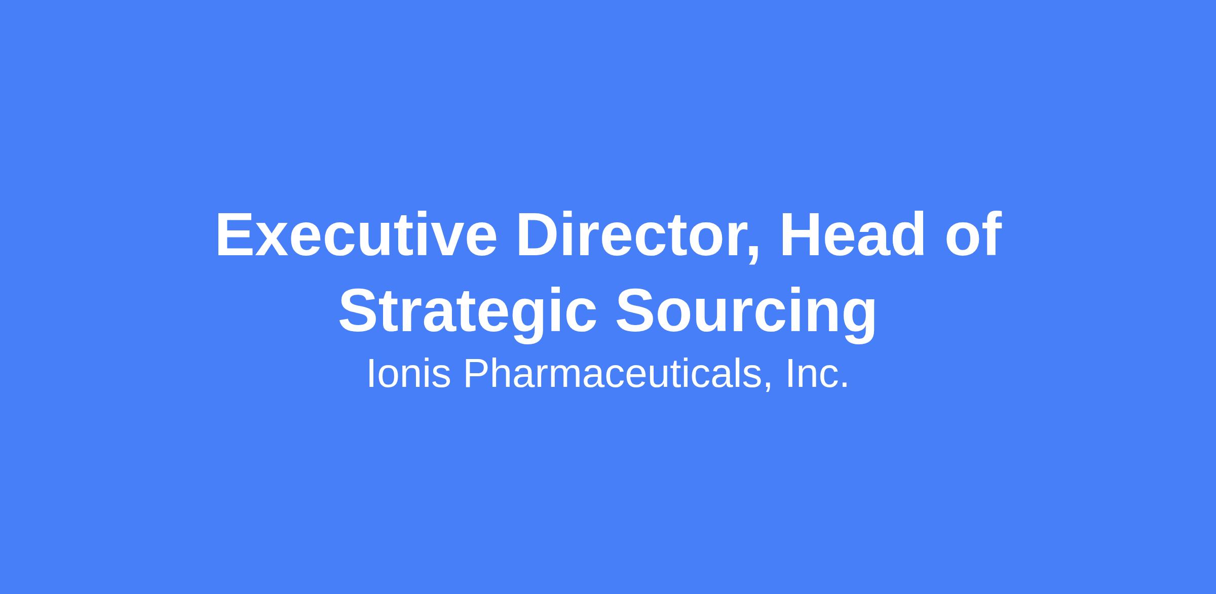 Ionis is seeking a dynamic, experienced, and visionary leader to establish and lead our Strategic Sourcing function. This role is responsible for executing a strategic sourcing roadmap and operating model aligned with Ionis’ values, culture, and strategic objectives. The ideal candidate will bring deep procurement expertise, demonstrated change leadership, and a passion for building high-performing teams. The position focuses on transforming from decentralized, department-driven procurement to an enterprise-wide strategic sourcing approach, with visibility and stakeholder influence. Ideally located at our corporate headquarters in Carlsbad, California.