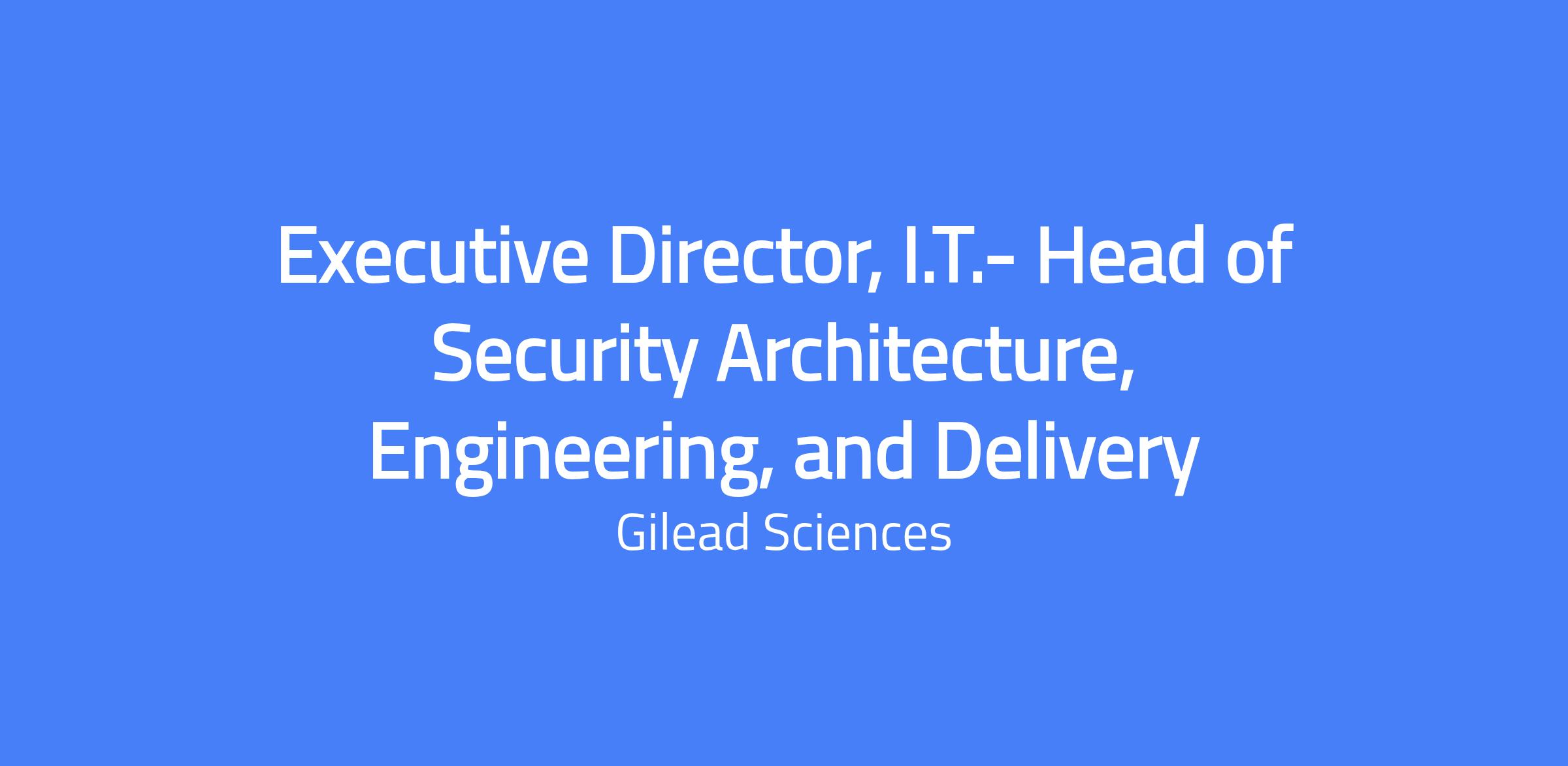 The Head of Security Architecture, Engineering, and Delivery serves as Deputy CISO, leading the architecture, engineering, and delivery of enterprise security capabilities to protect employees, patients, and research. This role partners across Security Operations, Risk, Data Privacy, QA, Infrastructure, Network, and Business IT to translate complex security requirements into clear guidance and maintain a strong security posture. It is a site-based role at Gilead's Foster City, CA headquarters with remote work not available; optional work-from-home days on Monday and Friday with core collaboration days in the office.