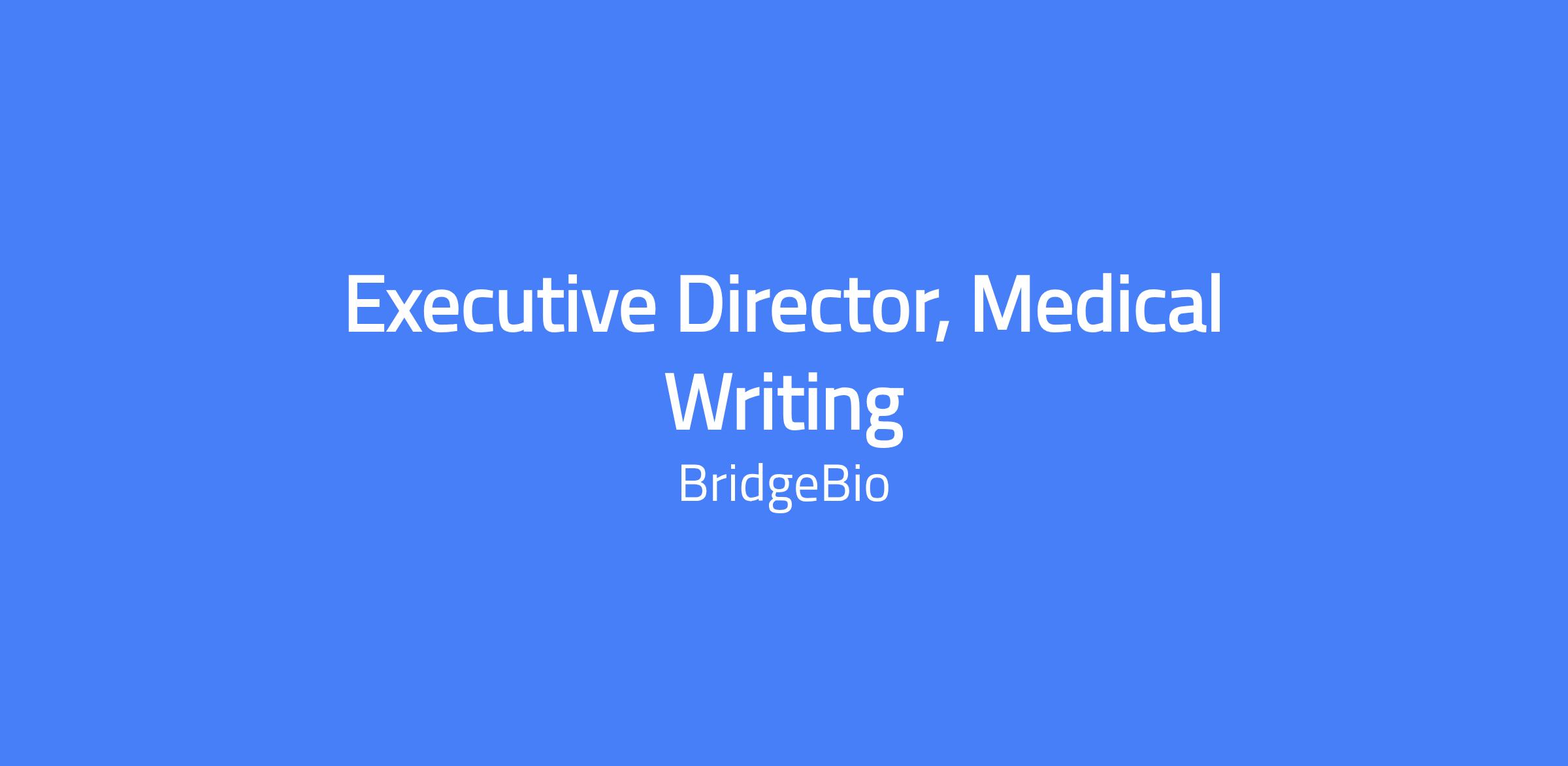 Executive Director, Medical Writing responsible for establishing and managing the Cardiorenal Medical Writing group within BridgeBio, overseeing development and finalization of clinical and regulatory documents, and guiding internal and external Medical Writers to deliver high-quality submissions and disclosures in regulatory programs.