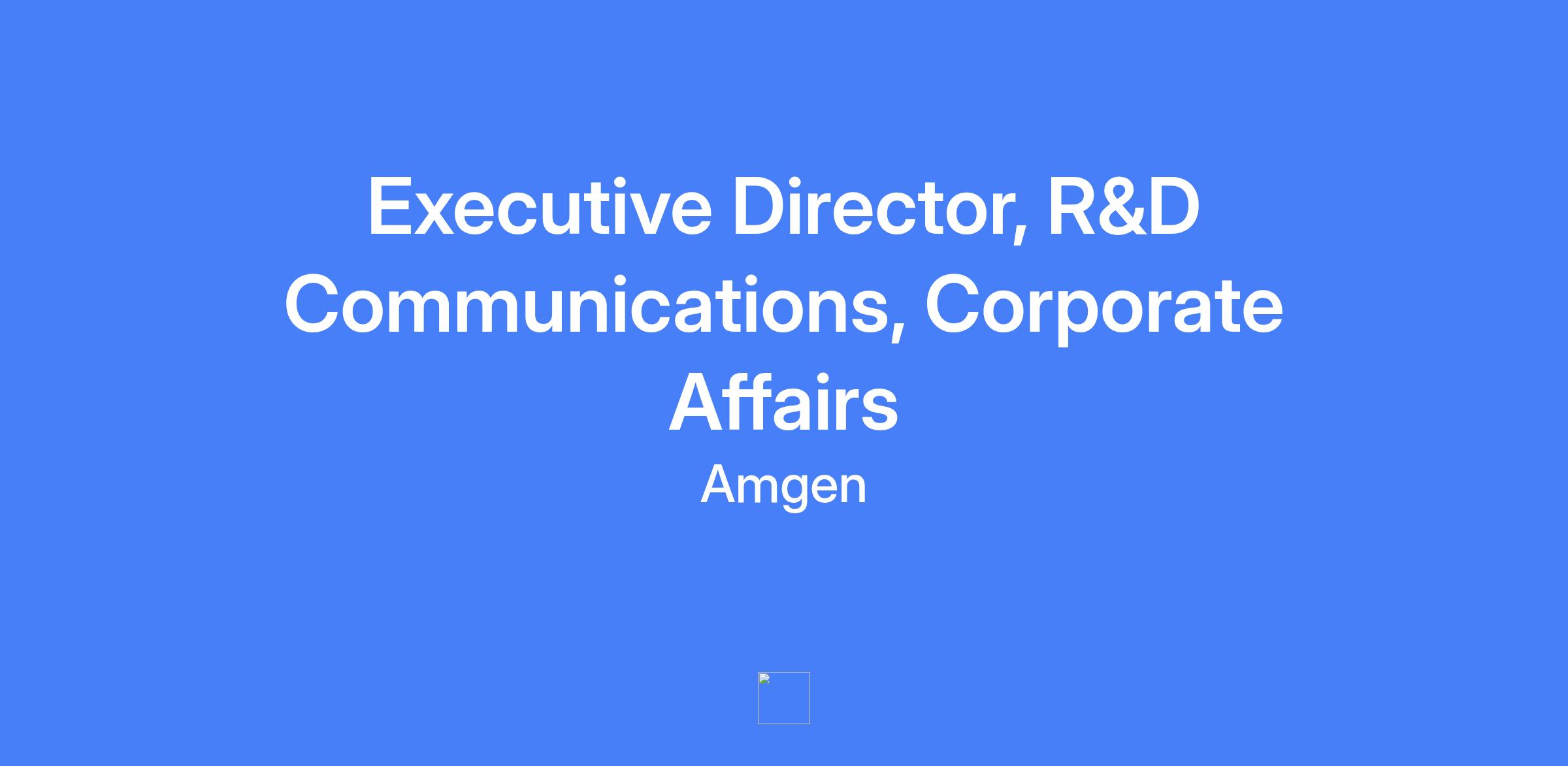Executive Director, R&D Communications, Corporate Affairs at Amgen. Lead Amgen’s global scientific and R&D communications strategy, shaping how we tell our science story across discovery, clinical development, and research innovation. Oversee strategic communications for R&D, including external thought leadership and employee engagement.