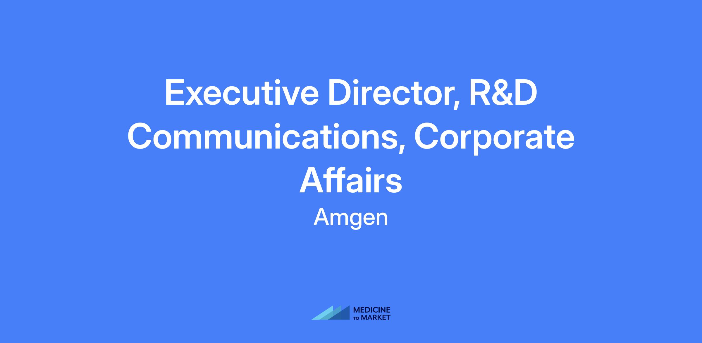 Executive Director, R&D Communications, Corporate Affairs at Amgen. Lead Amgen’s global scientific and R&D communications strategy, shaping how we tell our science story across discovery, clinical development, and research innovation. Oversee strategic communications for R&D, including external thought leadership and employee engagement.