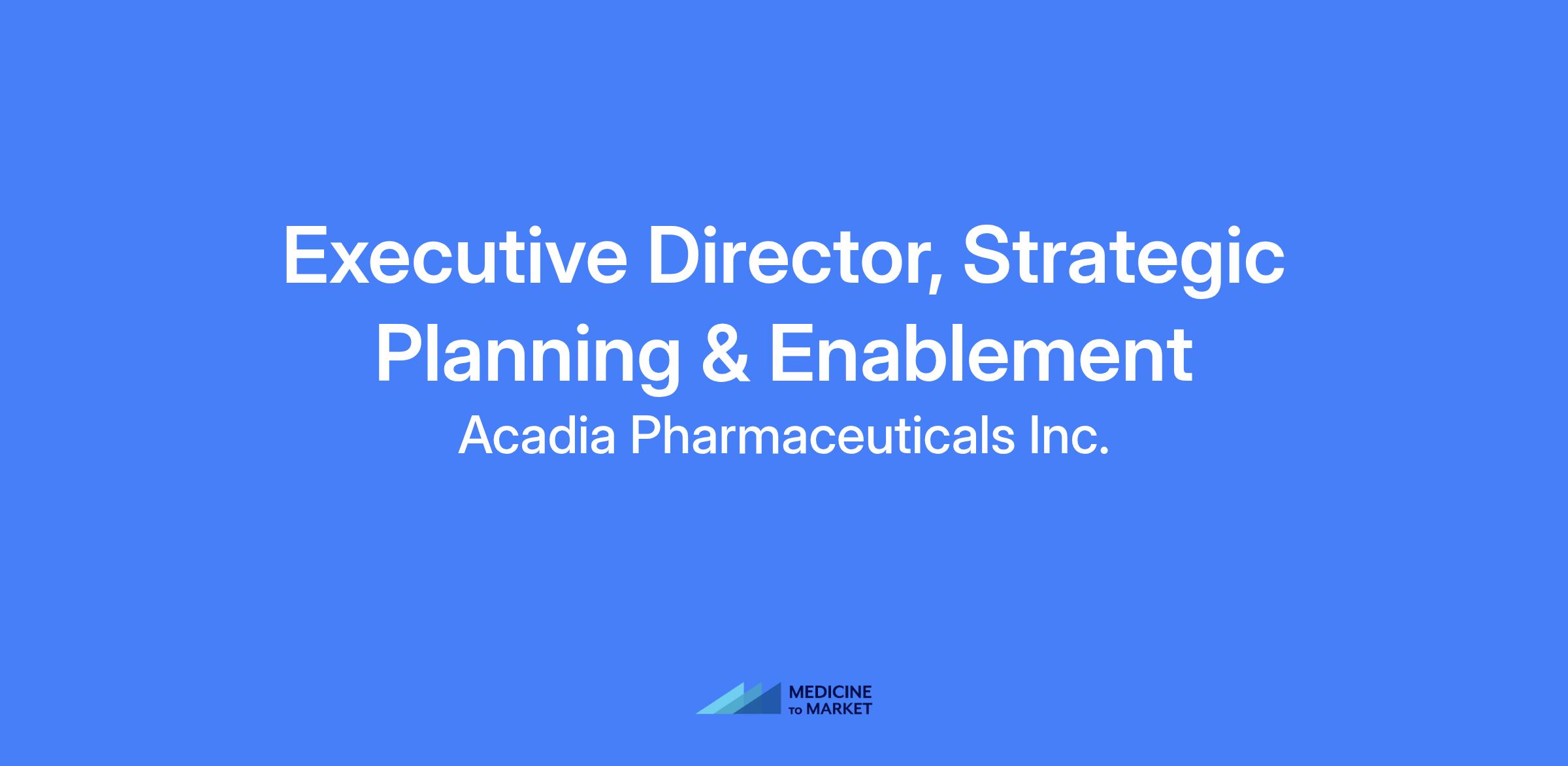 Executive Director, Commercial Strategy & Enablement. Responsible for defining and executing the strategy that powers Acadia’s commercial success, overseeing Strategic Forecasting, Omnichannel Enablement, and Field Force Effectiveness to ensure alignment between corporate strategy and field execution.