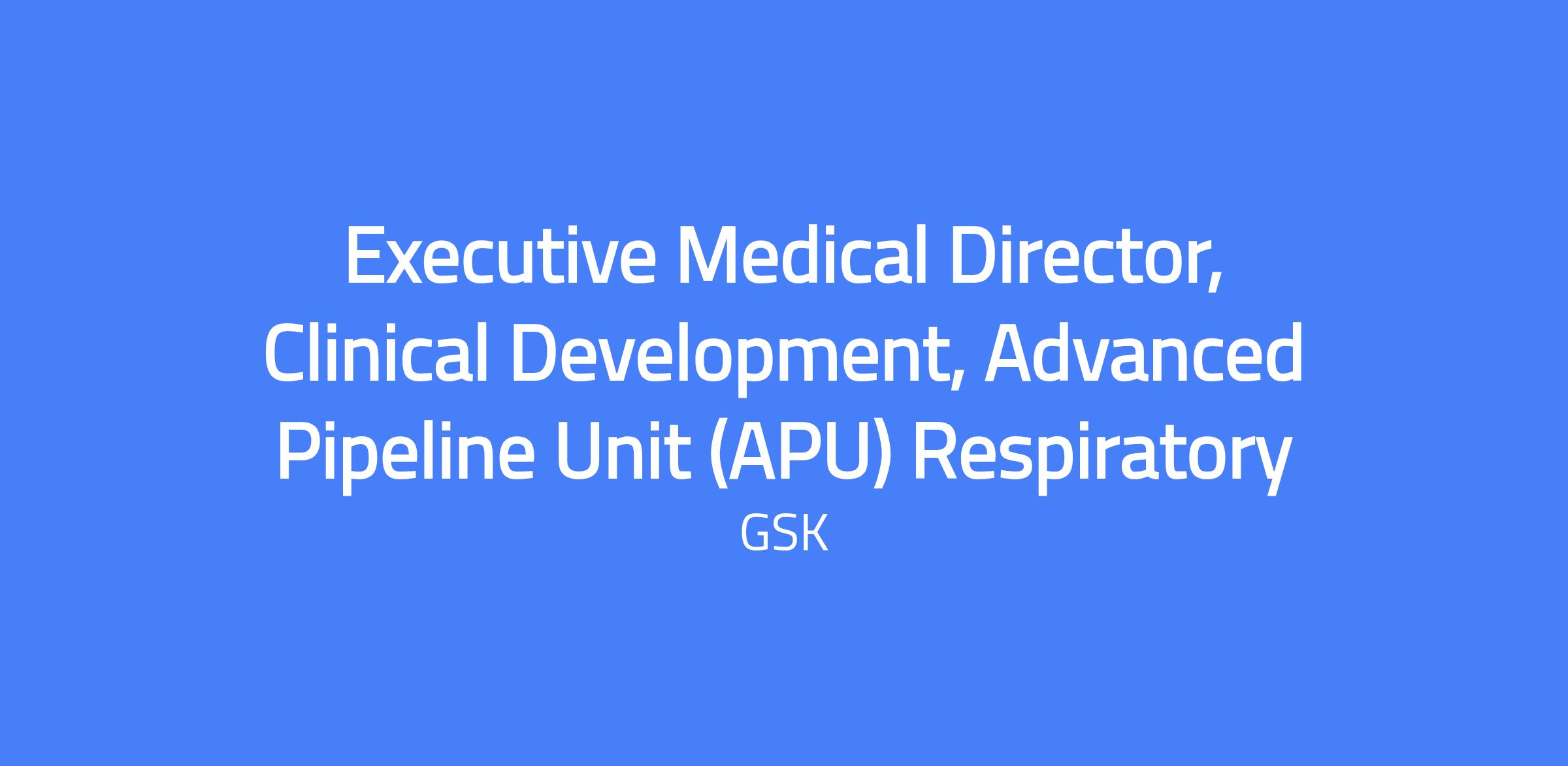 Executive Medical Director, Clinical Development, Advanced Pipeline Unit (APU) Respiratory
