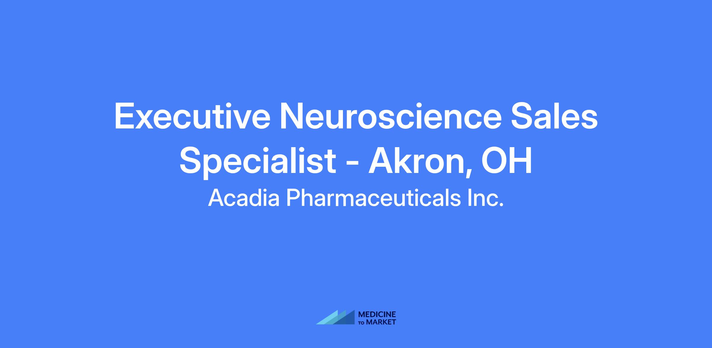 - Deep understanding of neuroscience disease states, Acadia products, and local/regional market dynamics.