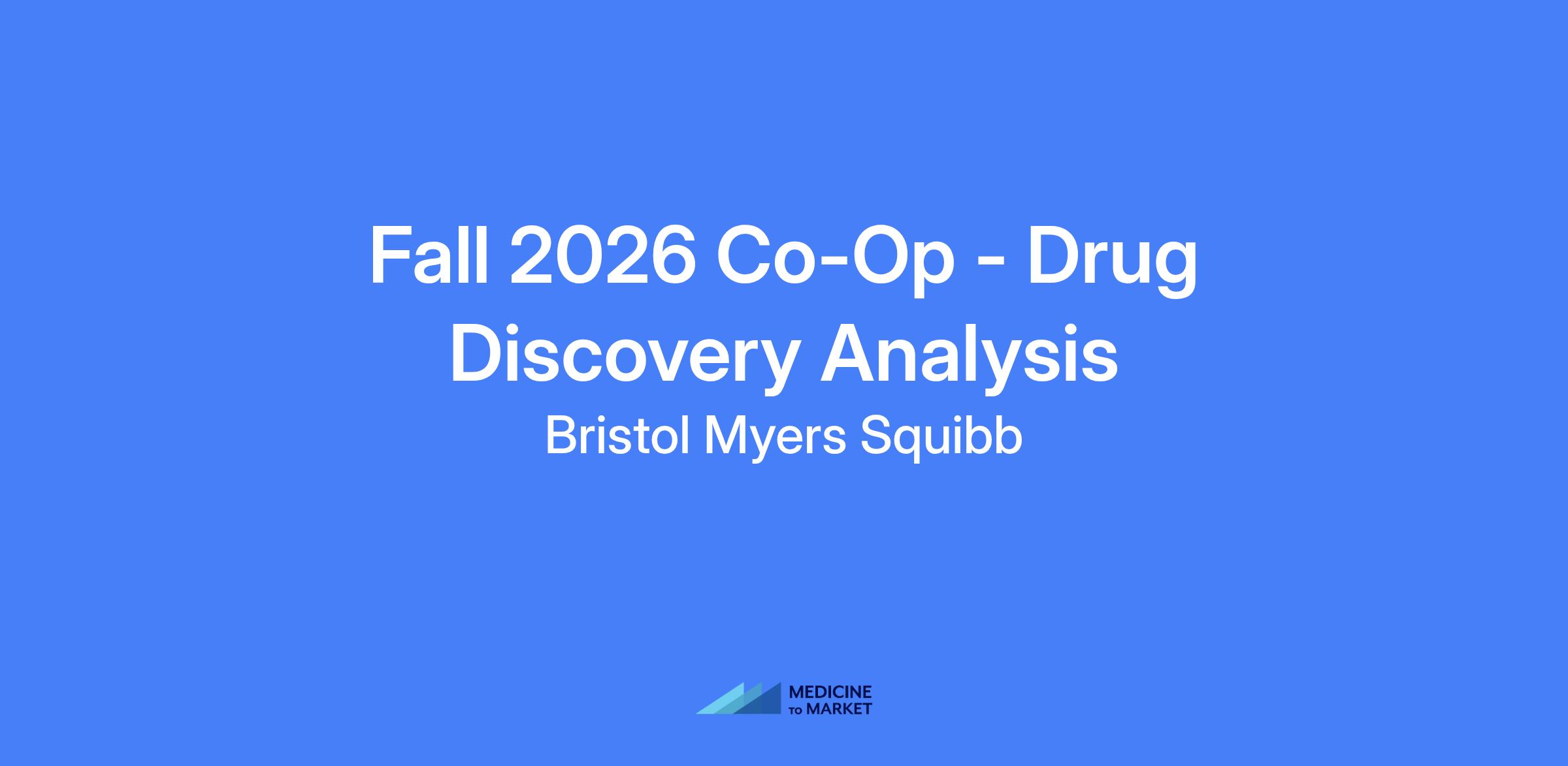 Fall 2026 Co-Op - Drug Discovery Analysis at Bristol Myers Squibb. Join the Drug Discovery Analytical team within the Leads Discovery and Optimization department to learn techniques in NMR-based metabolomics, contribute to implementing and validating novel sample preparations, and develop skills across analytical chemistry and metabolomics. The position runs JulyβΓΓ¬December 2026 and is site-essential with on-site requirements.