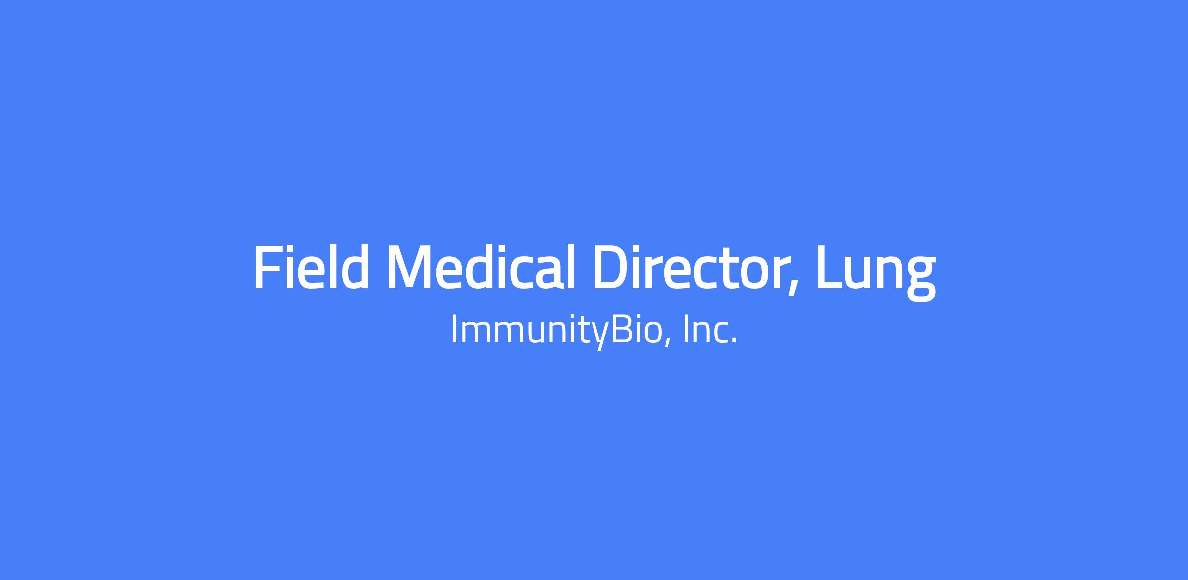 The Field Medical Director (FMD) is a field-facing representative of the Medical Affairs Department with a primary responsibility to engage in the exchange of scientific data and education of health care practitioners on ImmunityBio products and relevant disease states, and facilitation of clinical research. The FMD integrates clinical/scientific expertise and knowledge to ensure successful implementation of the medical affairs strategic plan within an assigned geographic region. The FMD brings relevant insights from the field on research developments, treatment landscape and new concepts in medical treatment. The role of the FMD is non-promotional in nature.