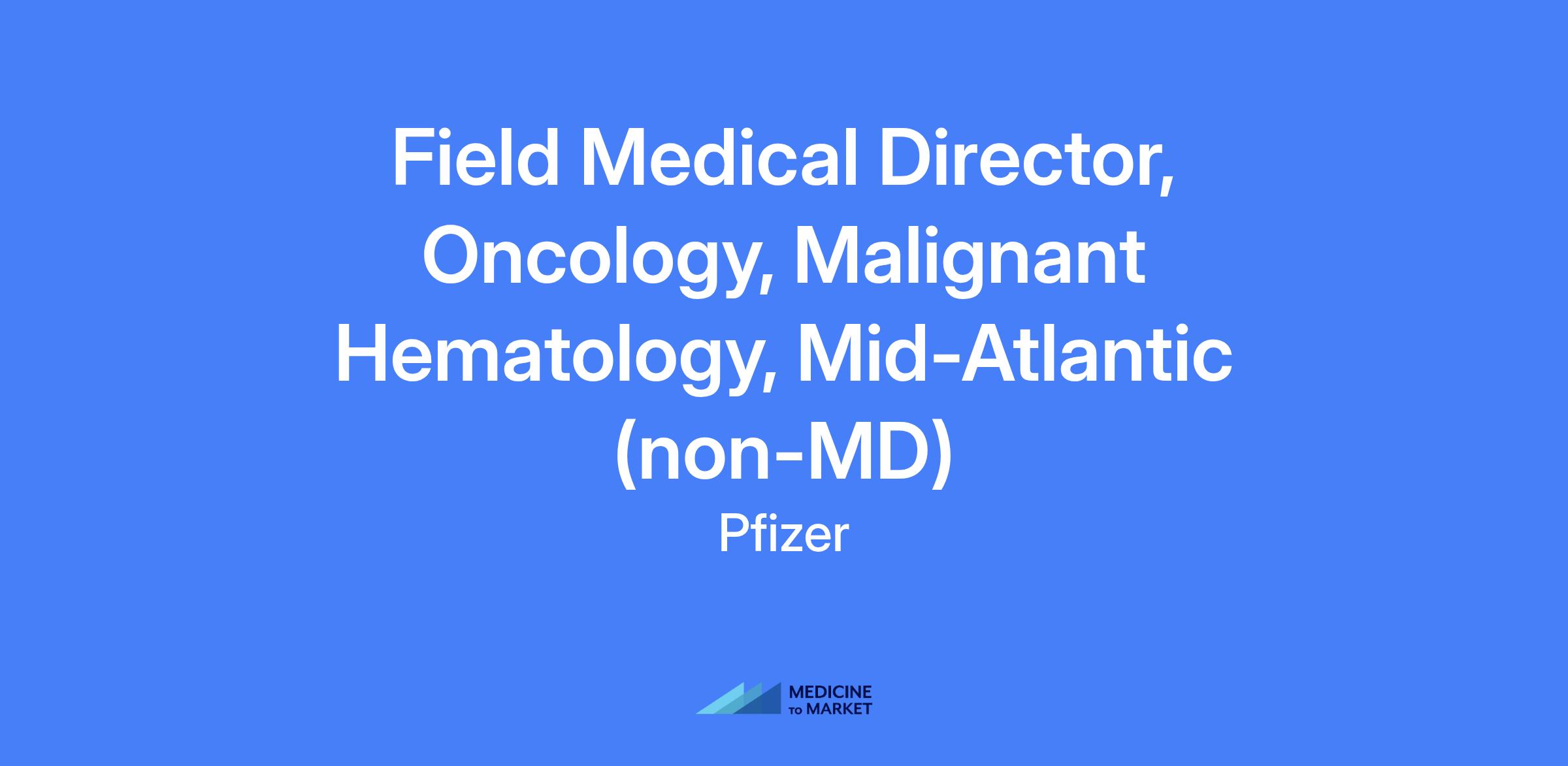 Field Medical Director, Oncology, Malignant Hematology, Mid-Atlantic (non-MD) βΓΓ¬ Remote - Field Based. Provides therapeutic area expertise in malignant hematology across Medical customer segments in the DE, MD, DC, VA region and leads medical strategy and engagement with appropriate customers.