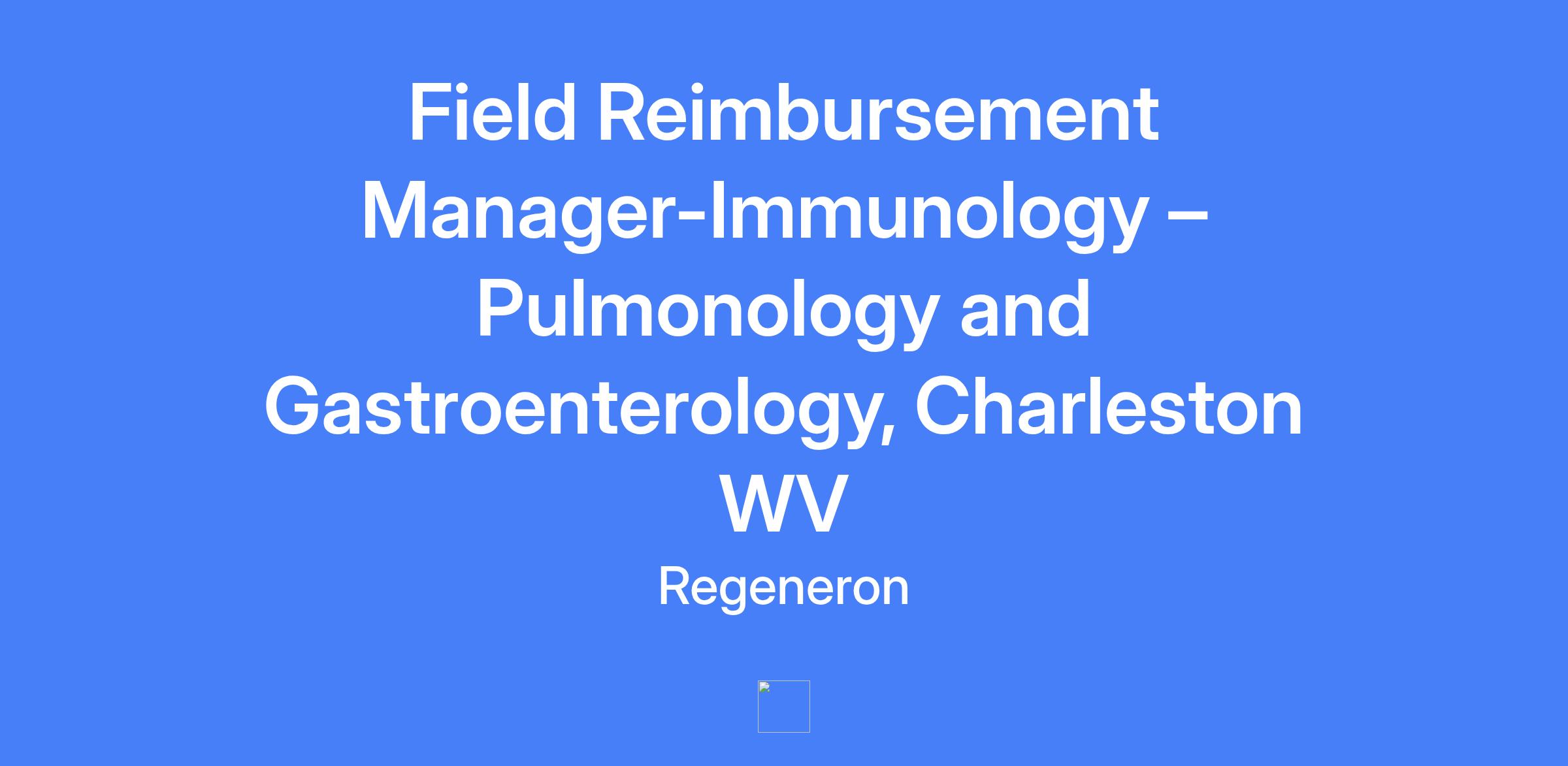 Field Reimbursement Manager, Immunology โ Pulmonology and Gastroenterology-Charleston, WV. The primary purpose of this role is to support Health Care Practitioner offices in obtaining appropriate access to Regeneron products for patients, ensuring optimal access and understanding of access services and program support as it relates to the Regeneron product portfolio.