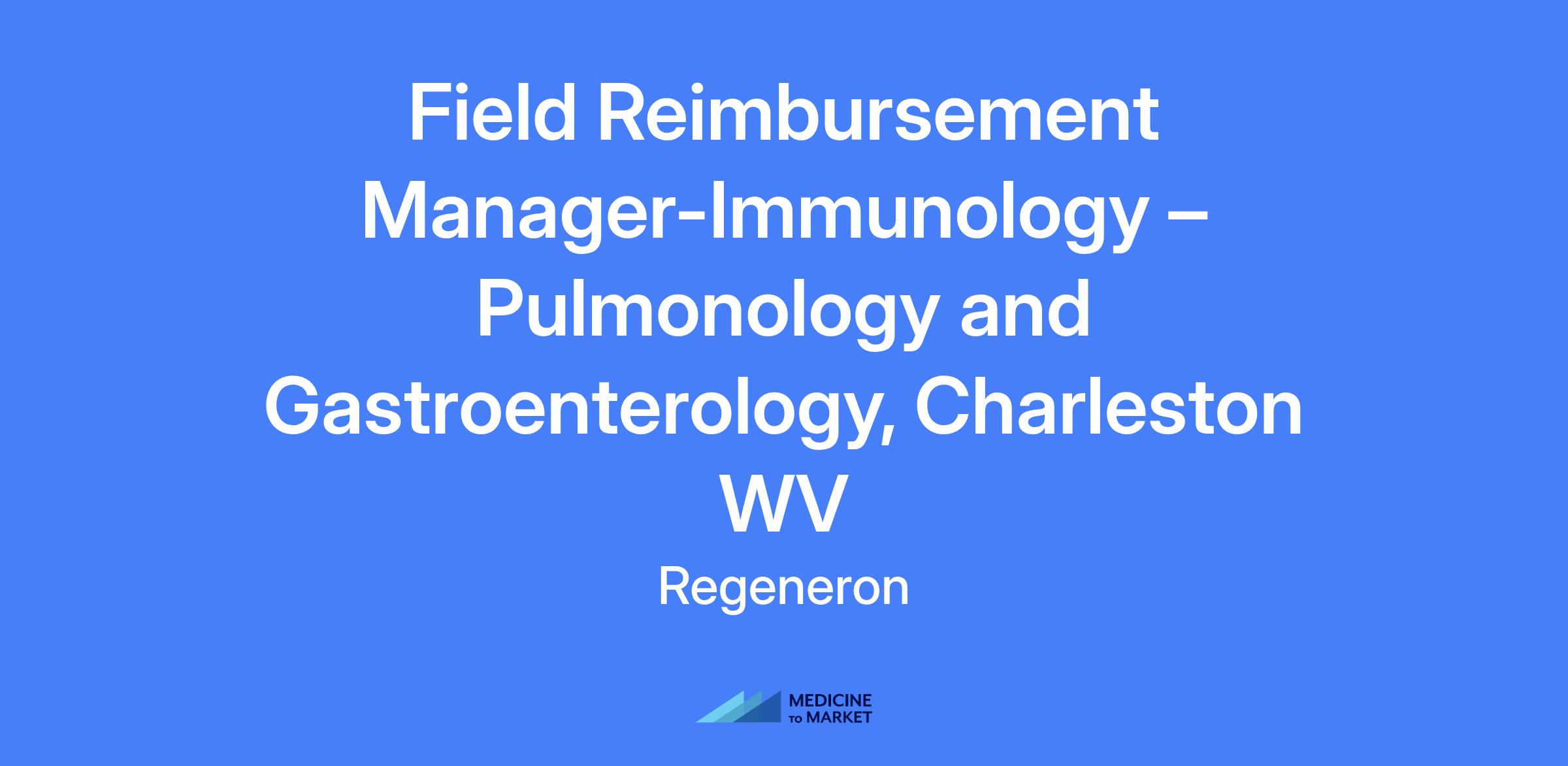 Field Reimbursement Manager, Immunology โ Pulmonology and Gastroenterology-Charleston, WV. The primary purpose of this role is to support Health Care Practitioner offices in obtaining appropriate access to Regeneron products for patients, ensuring optimal access and understanding of access services and program support as it relates to the Regeneron product portfolio.