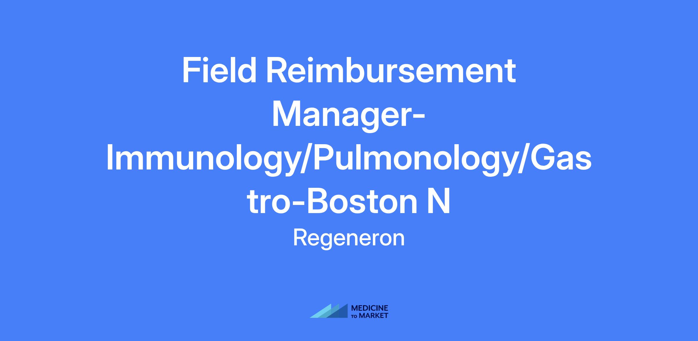 Field Reimbursement Manager, Immunology β Pulmonology and Gastroenterology (Boston, N). The role supports Health Care Practitioner offices in obtaining appropriate access to Regeneron products, ensuring optimal access and pull-through, and understanding of access services and program support across payer segments. The position navigates multiple internal stakeholders and reports to the District Manager of Field Market Access.